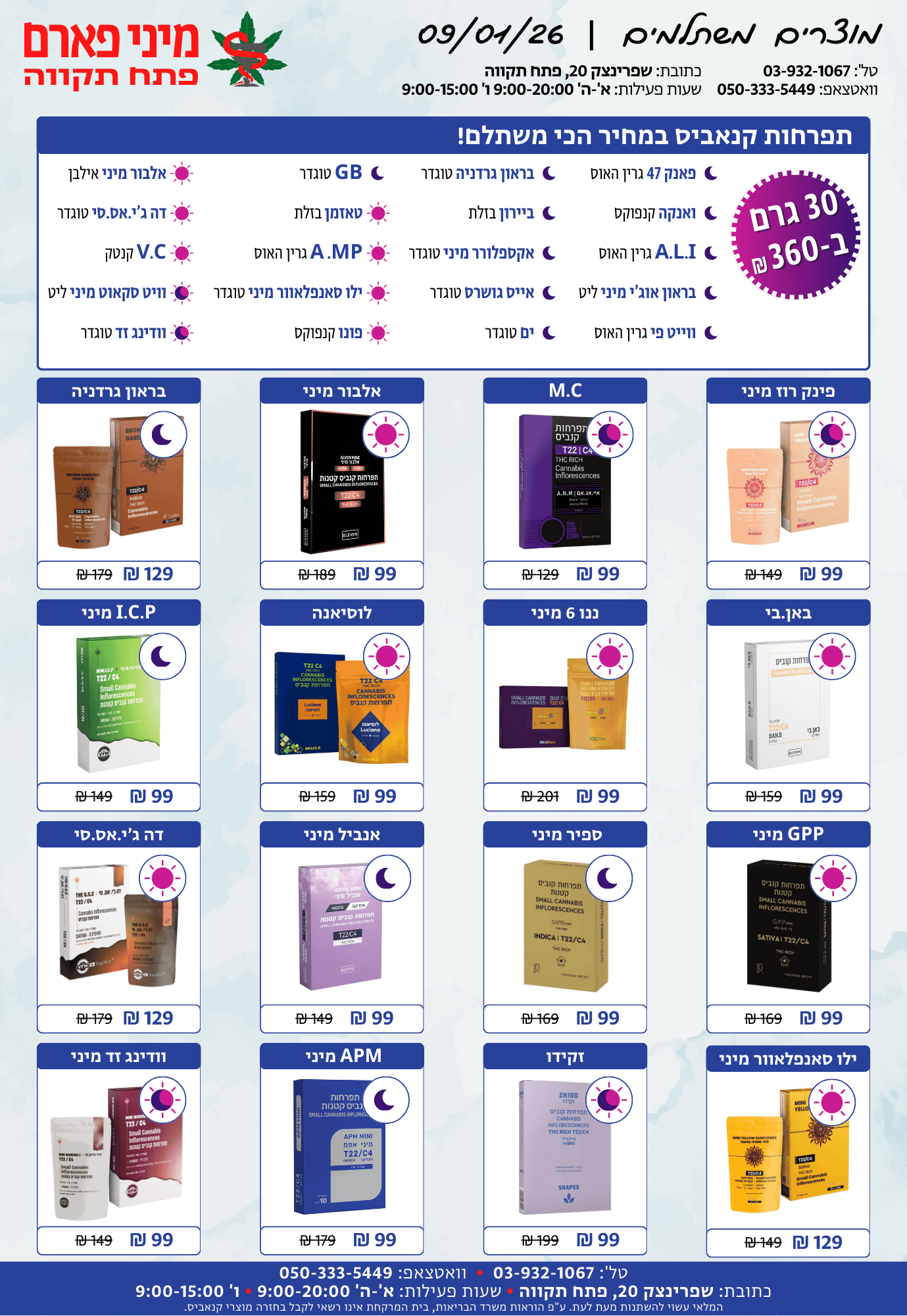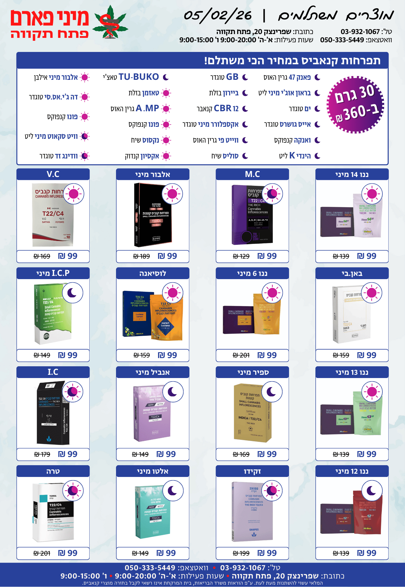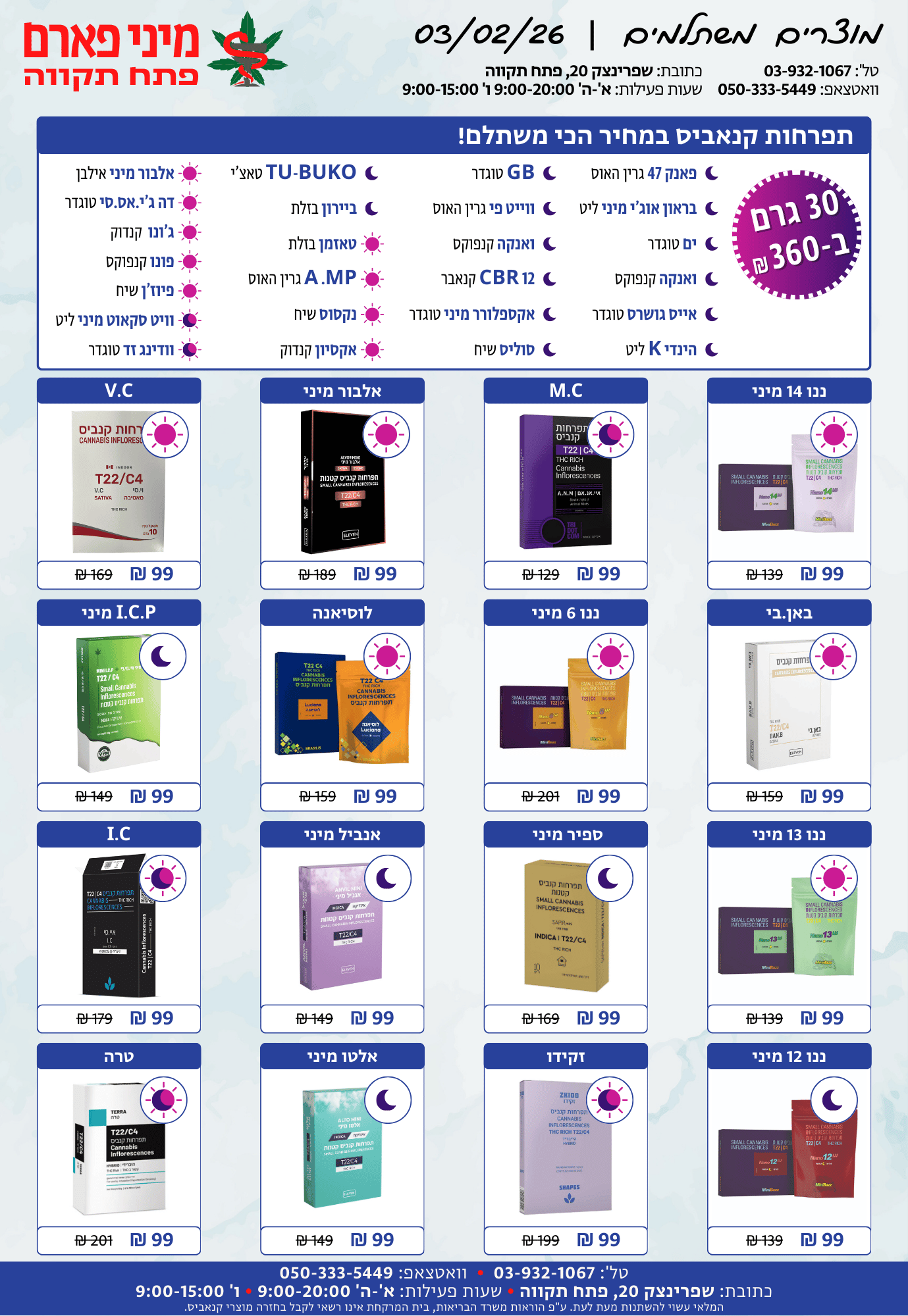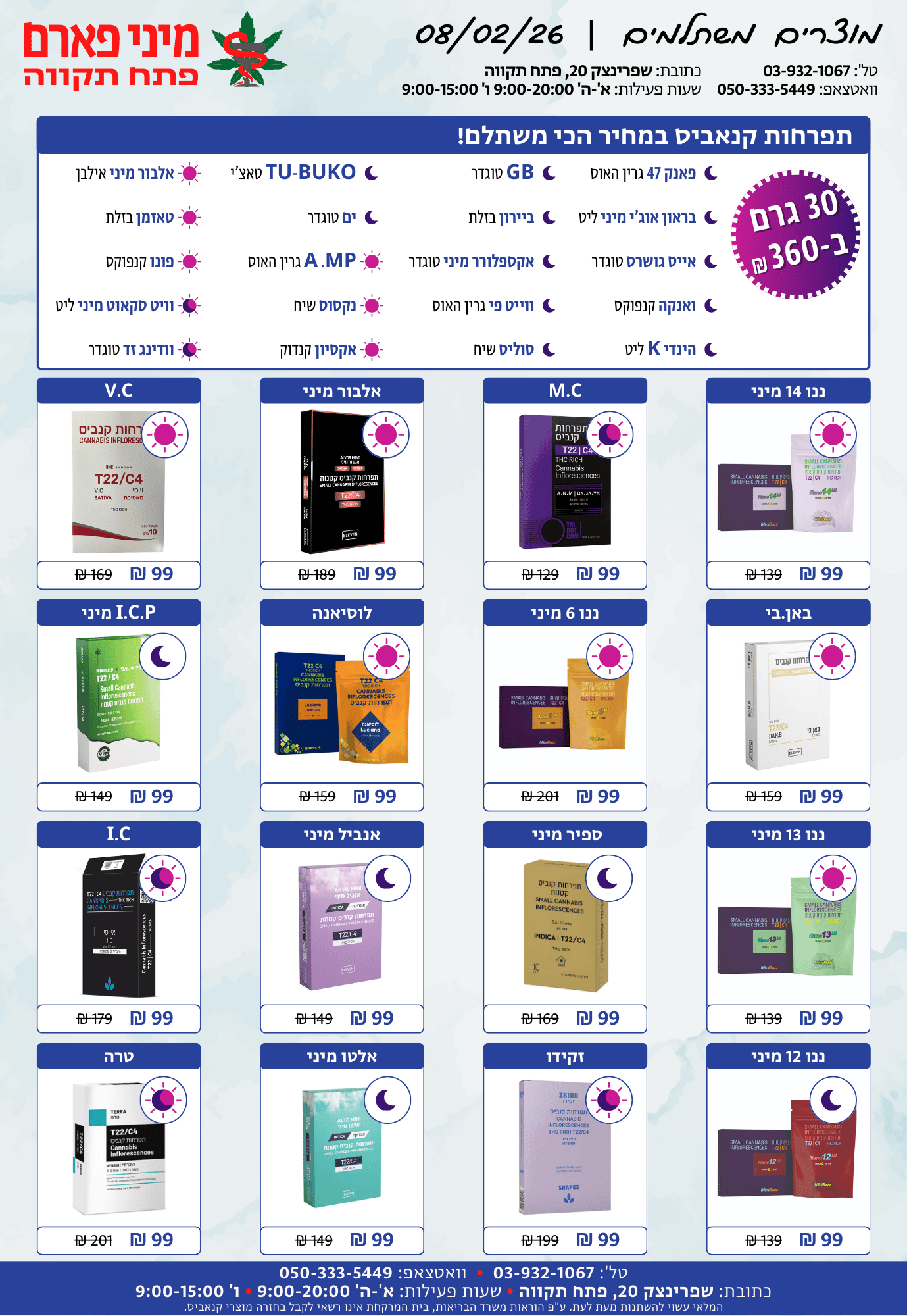 א'-ה': 08:30-14:30 • 15:30-20:00ו': 08:30-15:00