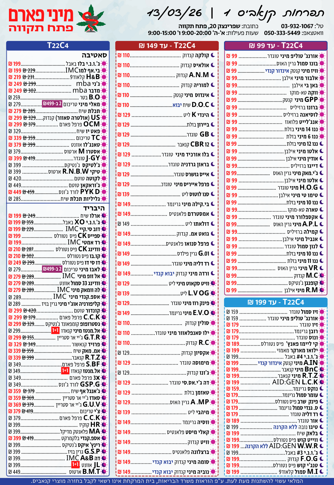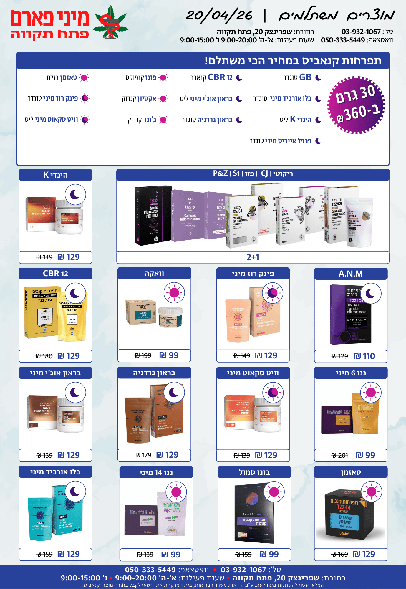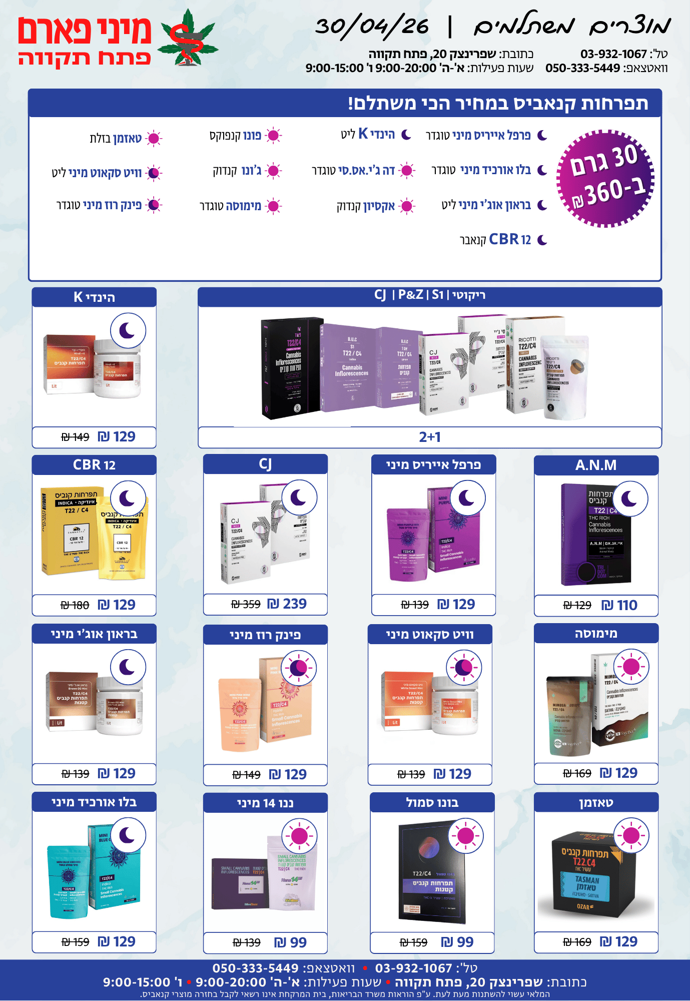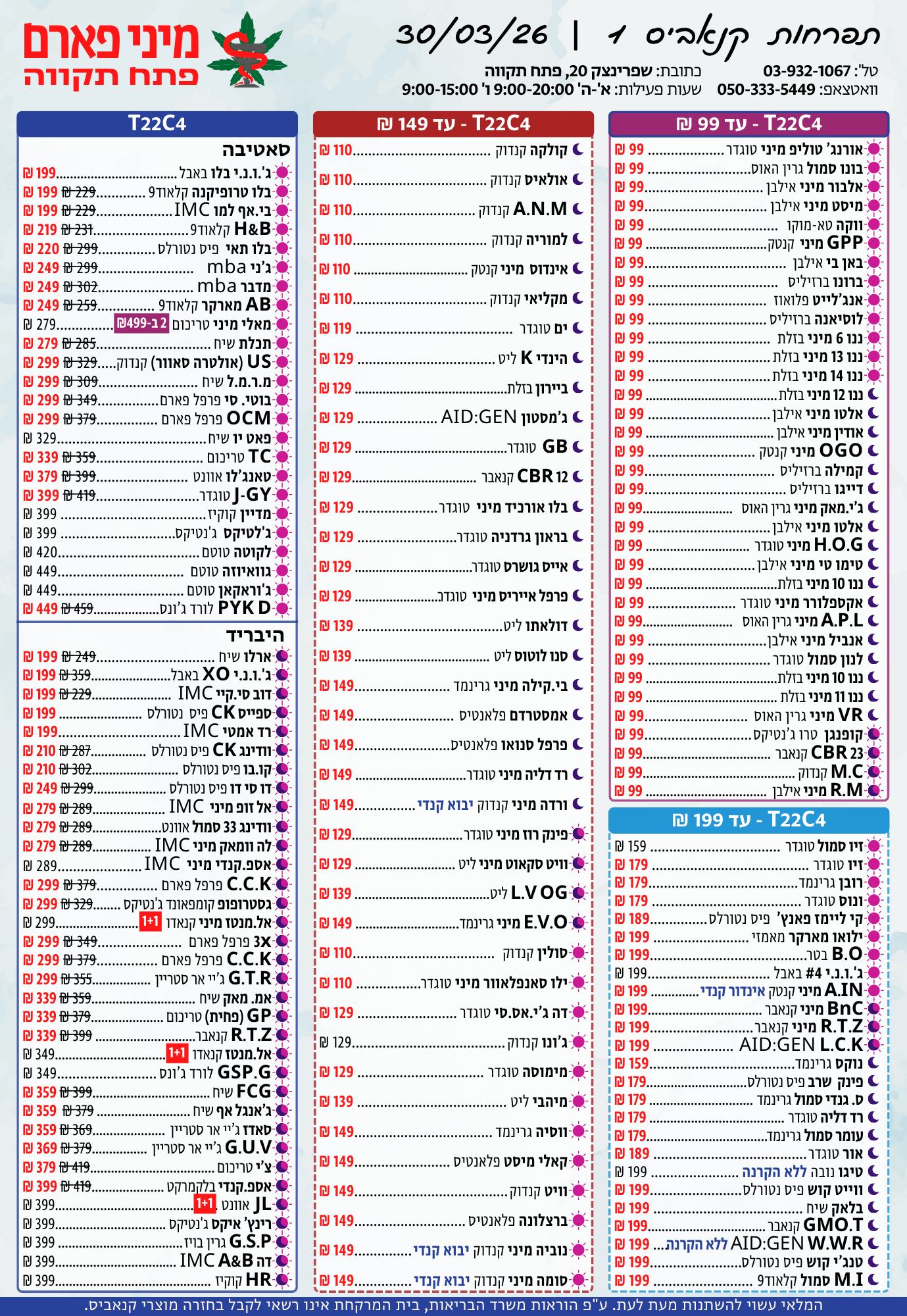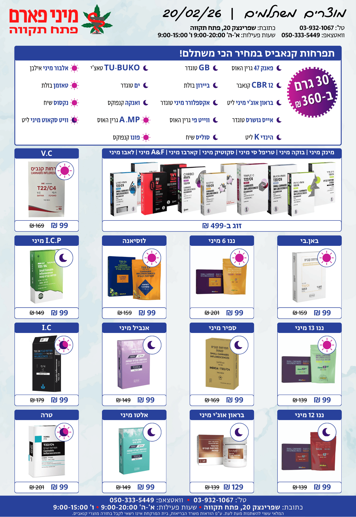 א'-ה': 08:30-14:30 • 15:30-20:00ו': 08:30-15:00