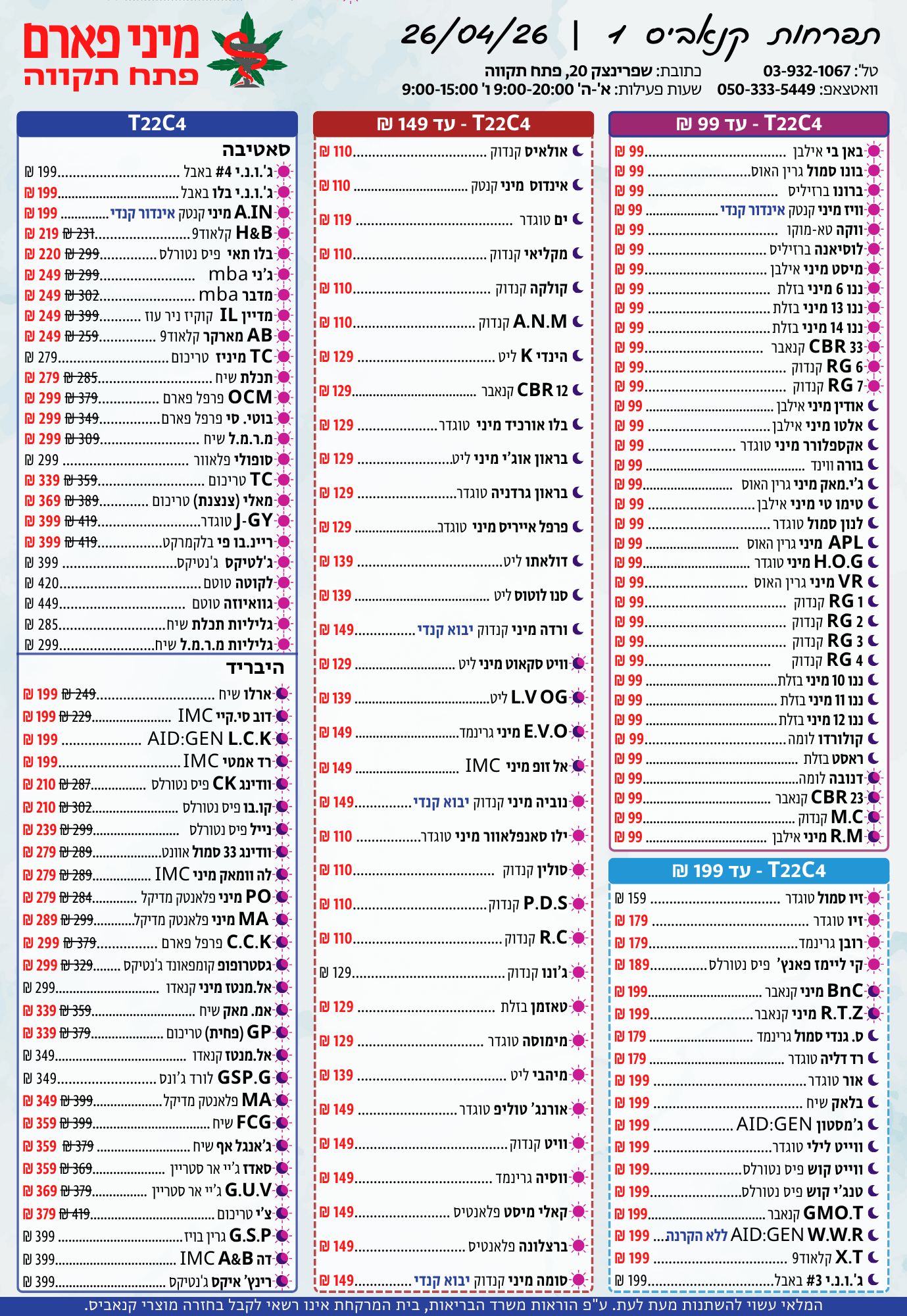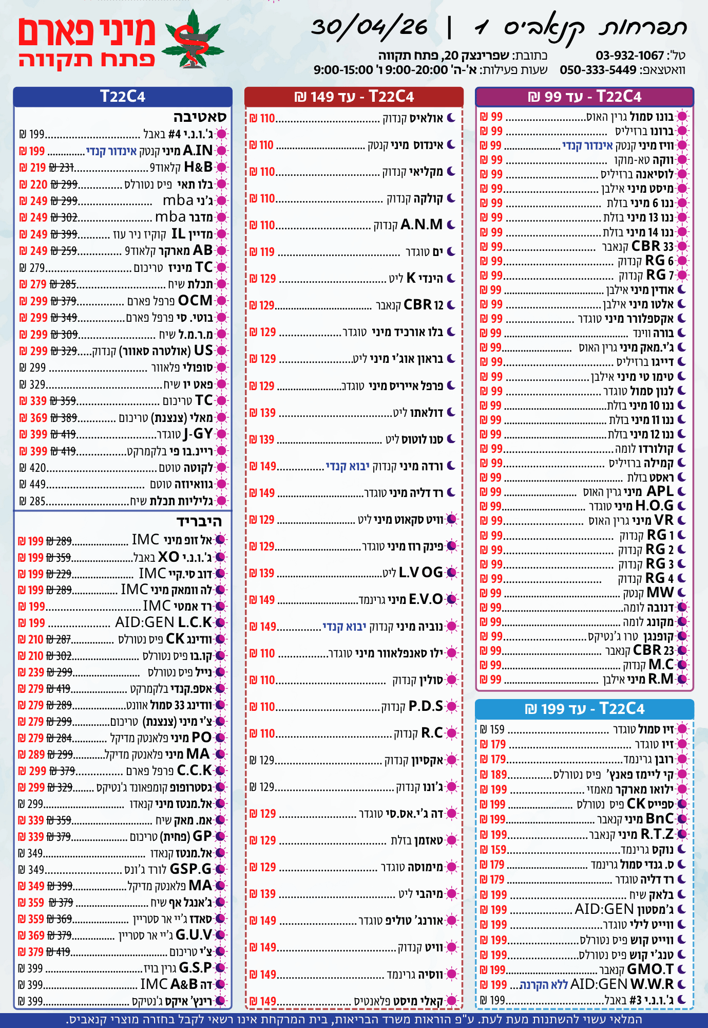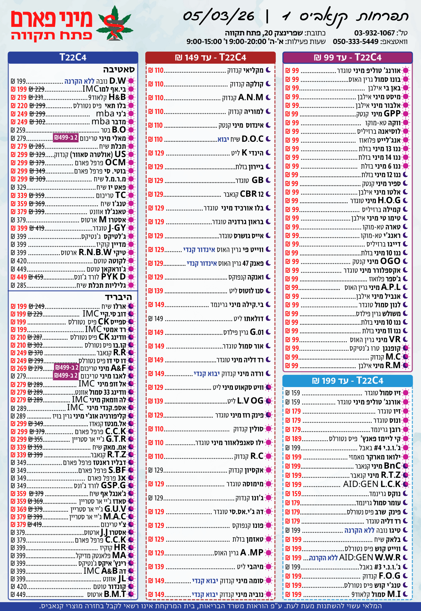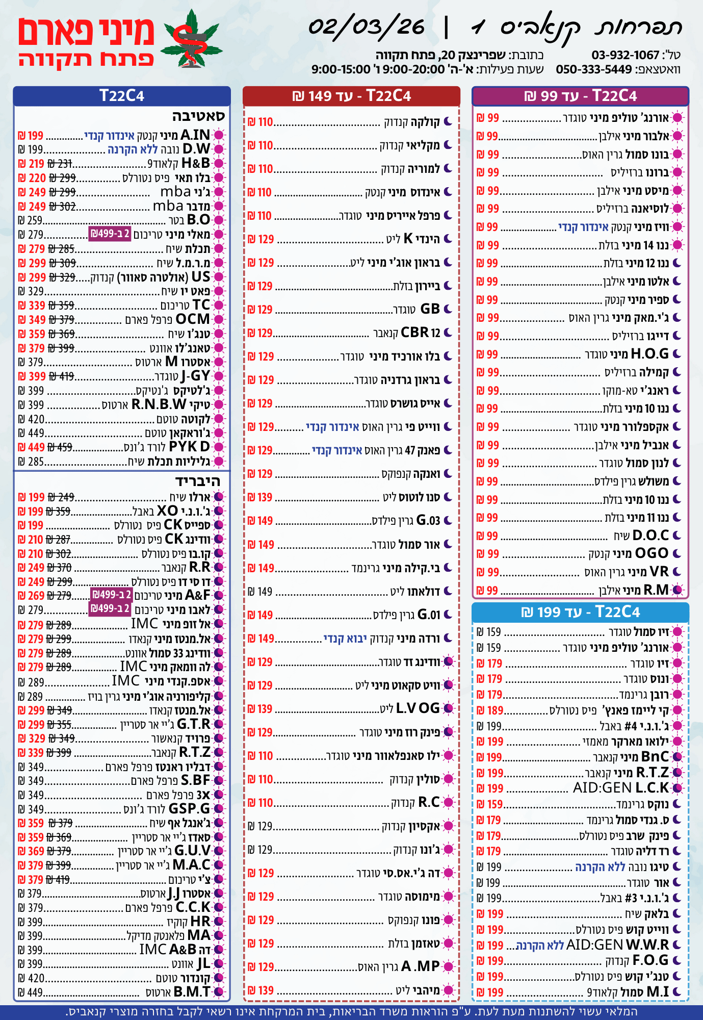 א'-ה': 08:30-14:30 • 15:30-20:00ו': 08:30-15:00