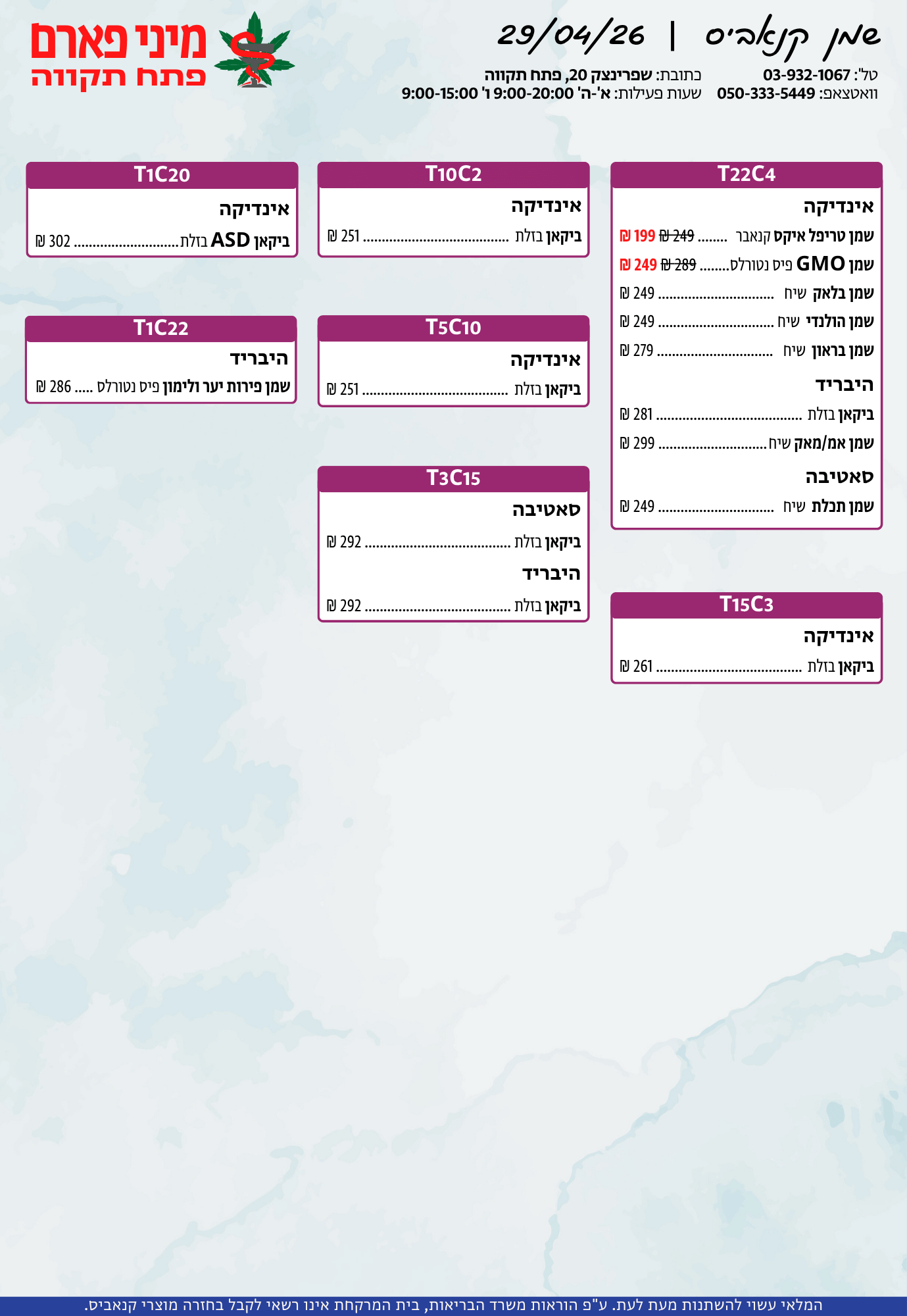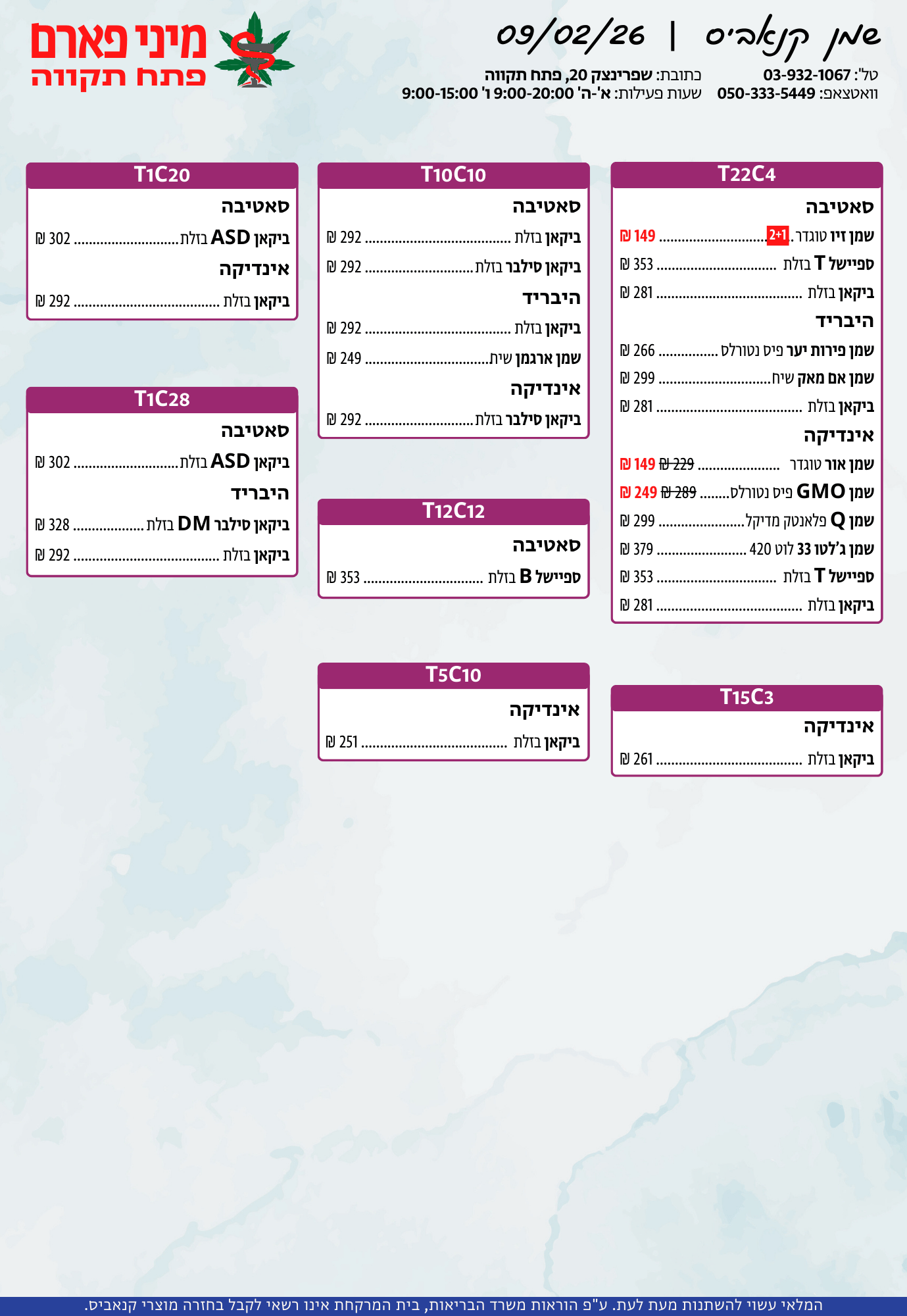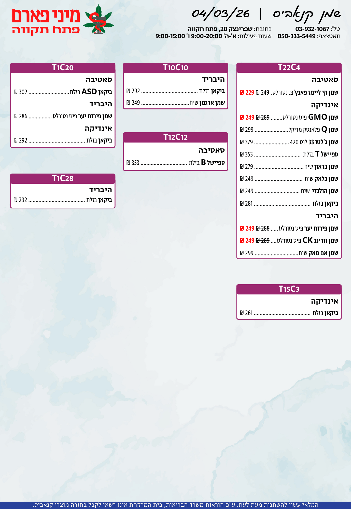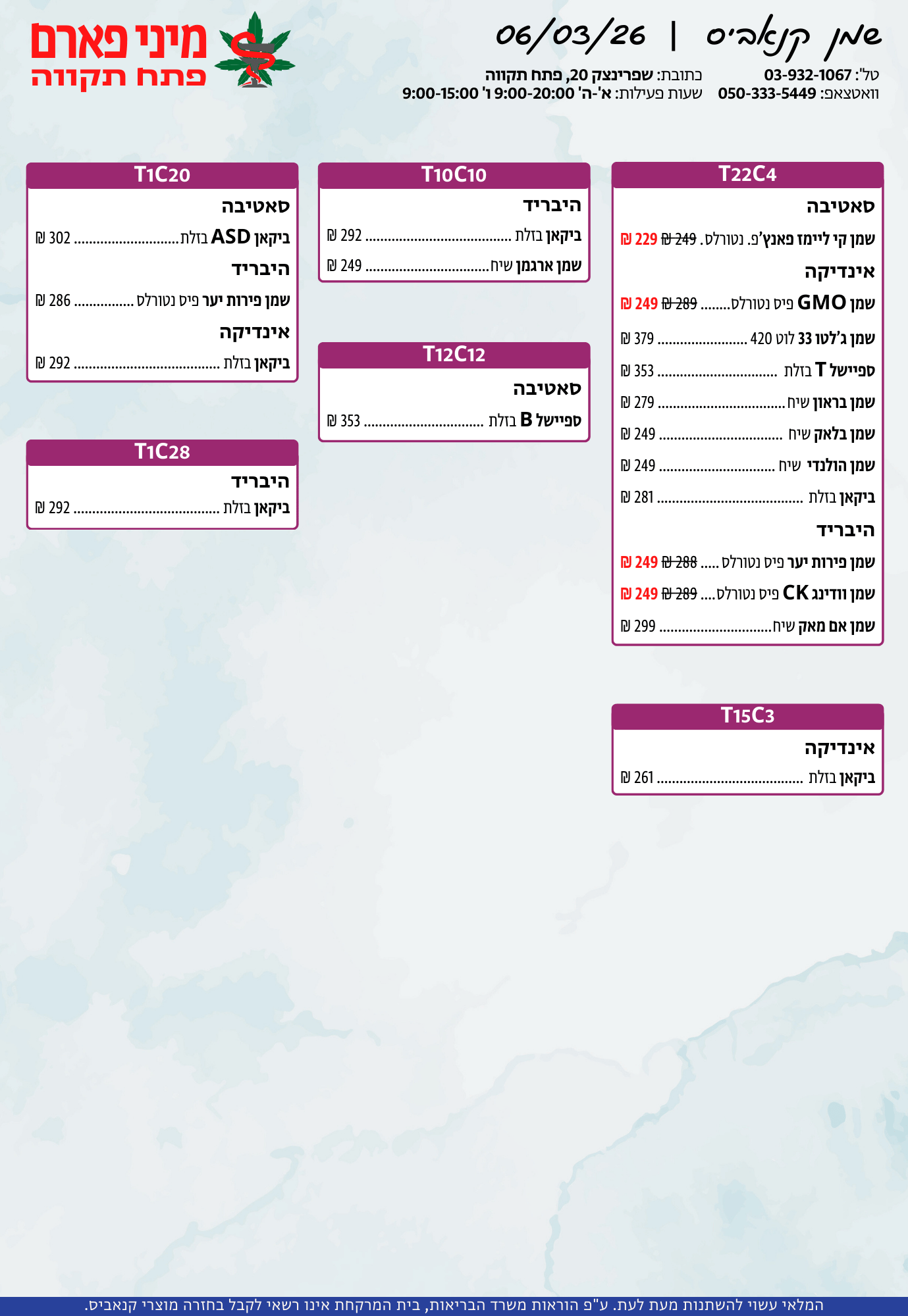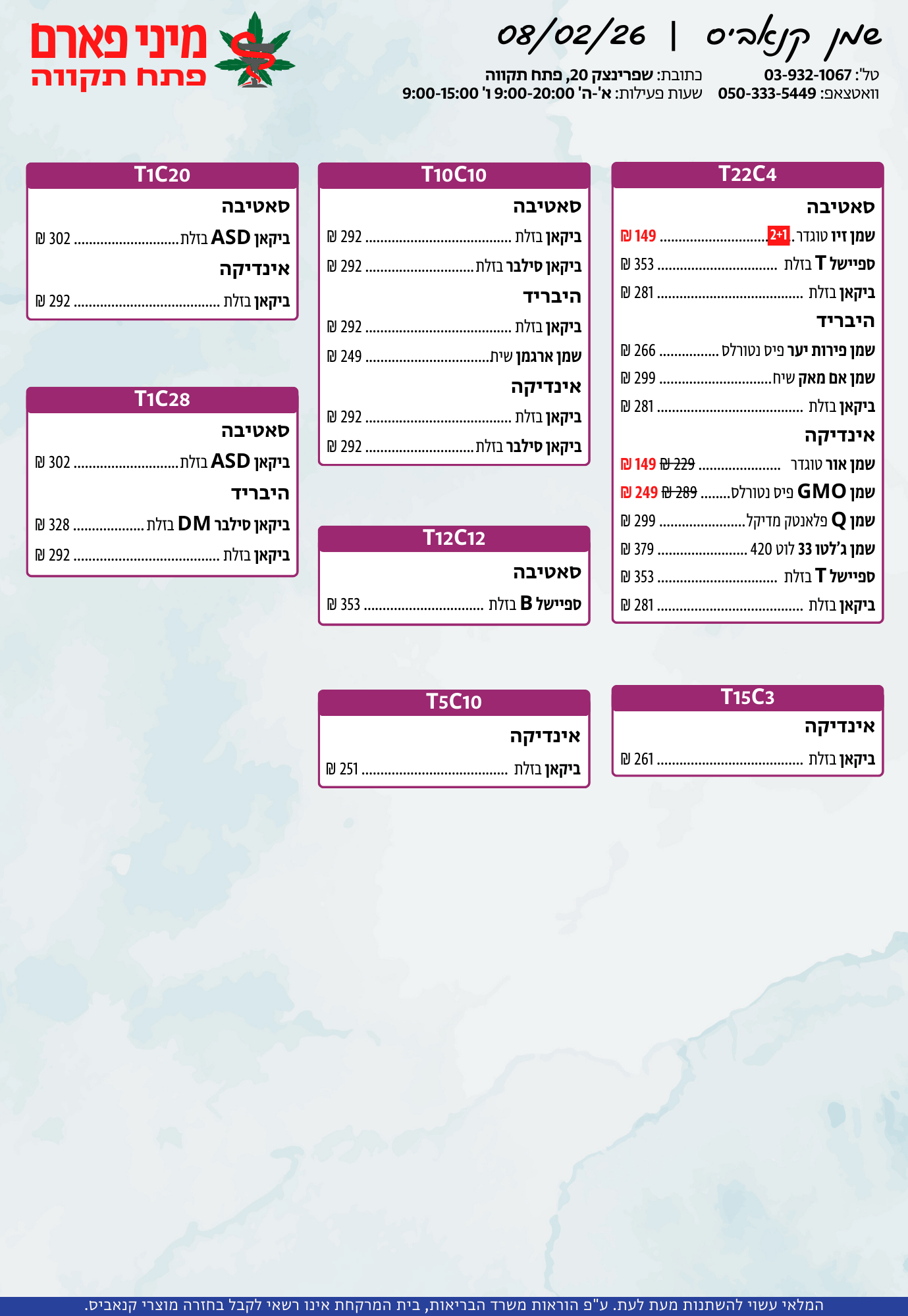 אתר זה מופעל על ידי בית מרקחת מיני פארם, רח' יוסף שפרינצק 20, פתח תקווה | רוקח אחראי: אימן נאסר – מ.ר: 5839