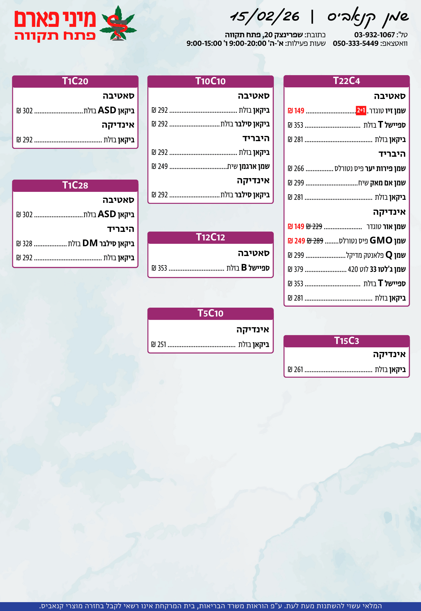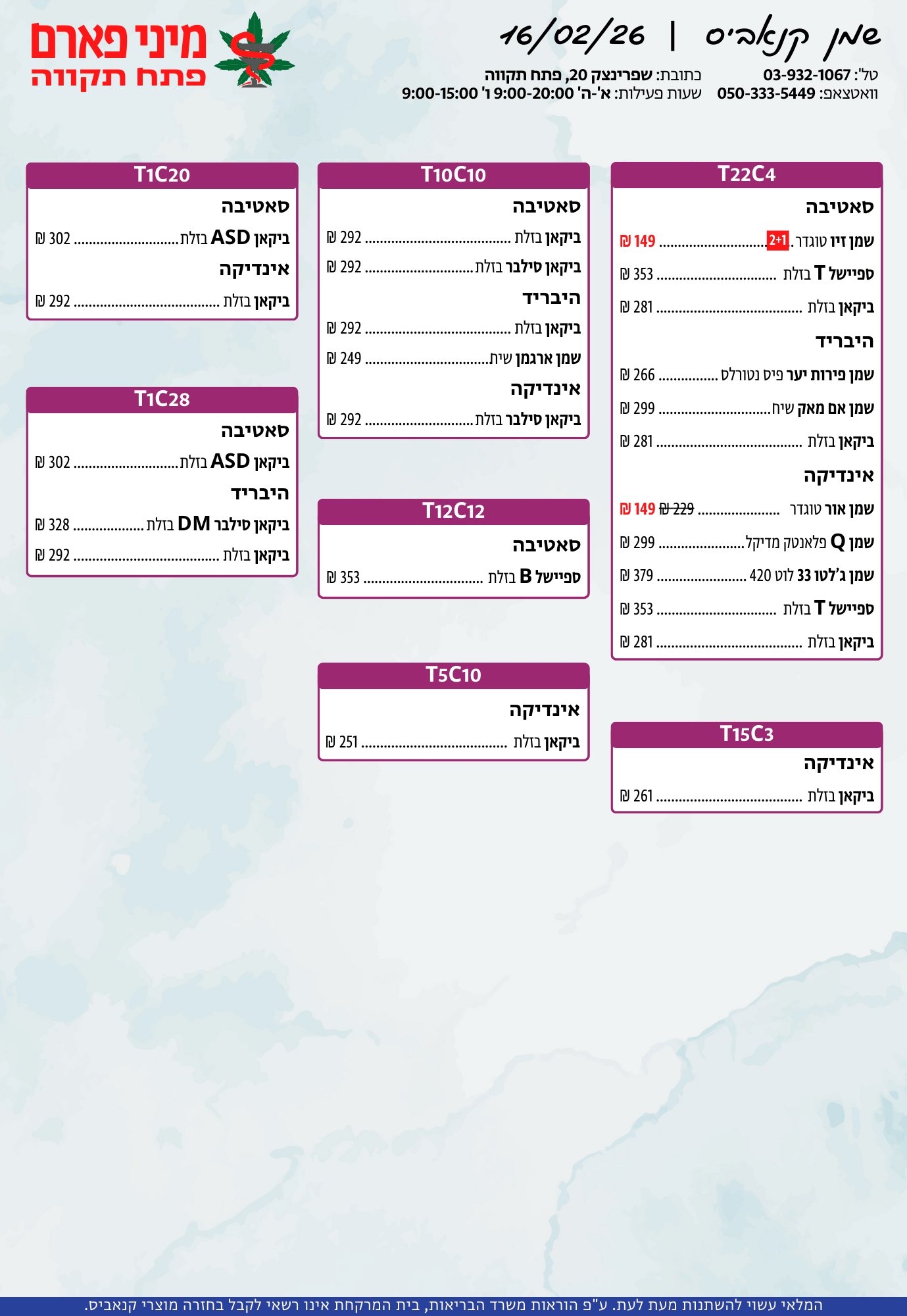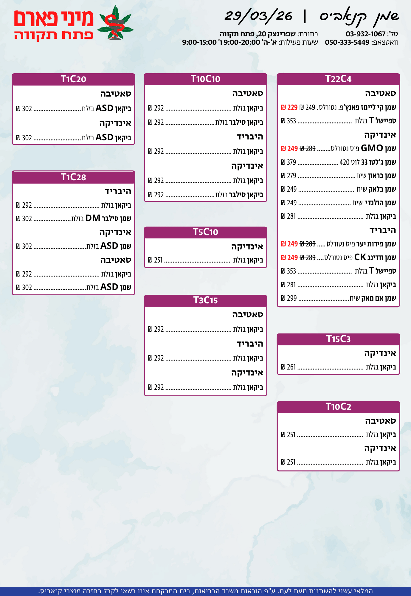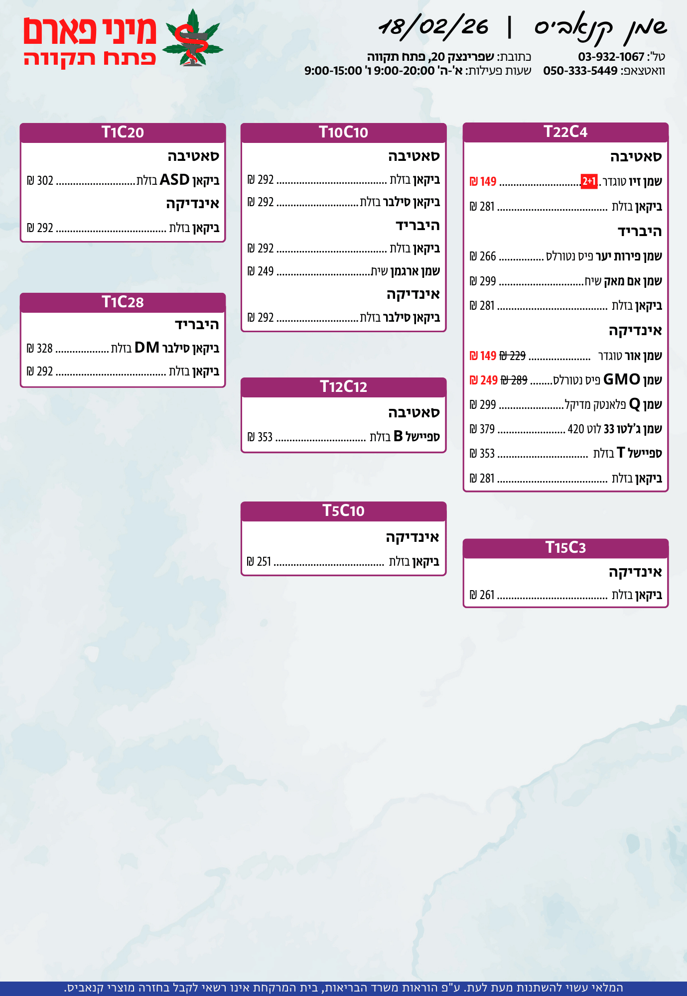 אתר זה מופעל על ידי בית מרקחת מיני פארם, רח' יוסף שפרינצק 20, פתח תקווה | רוקח אחראי: אימן נאסר – מ.ר: 5839