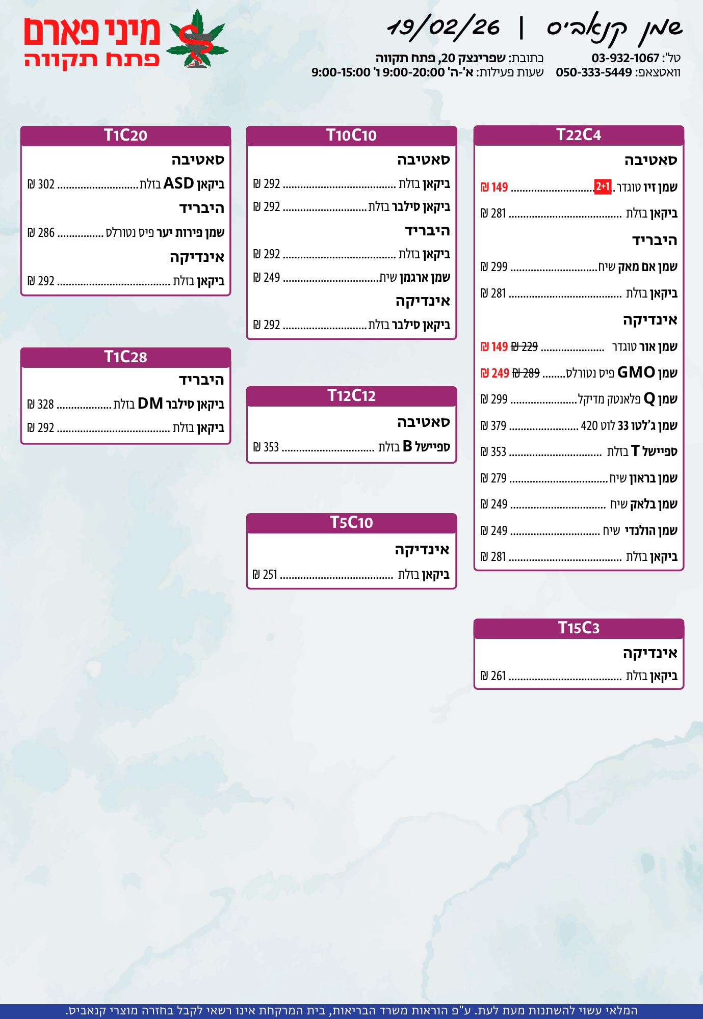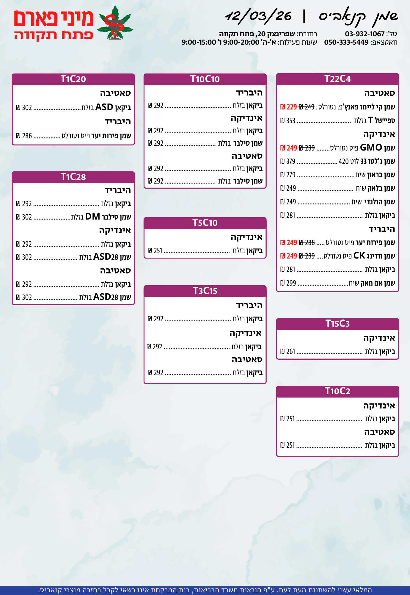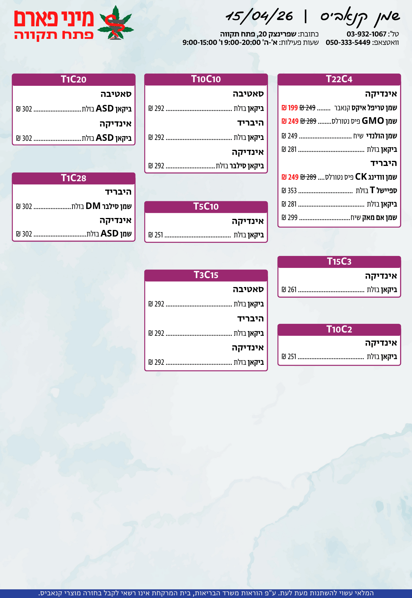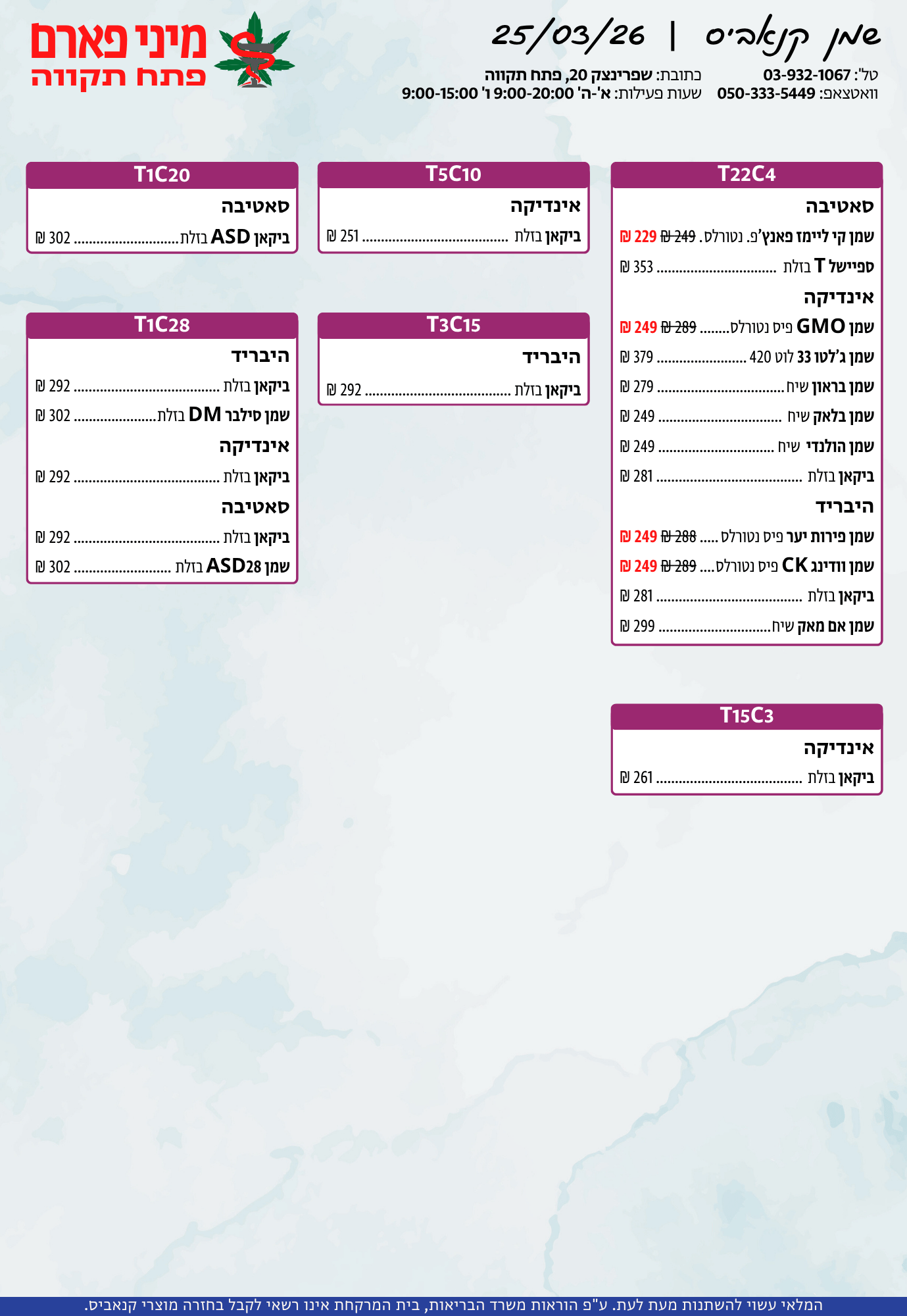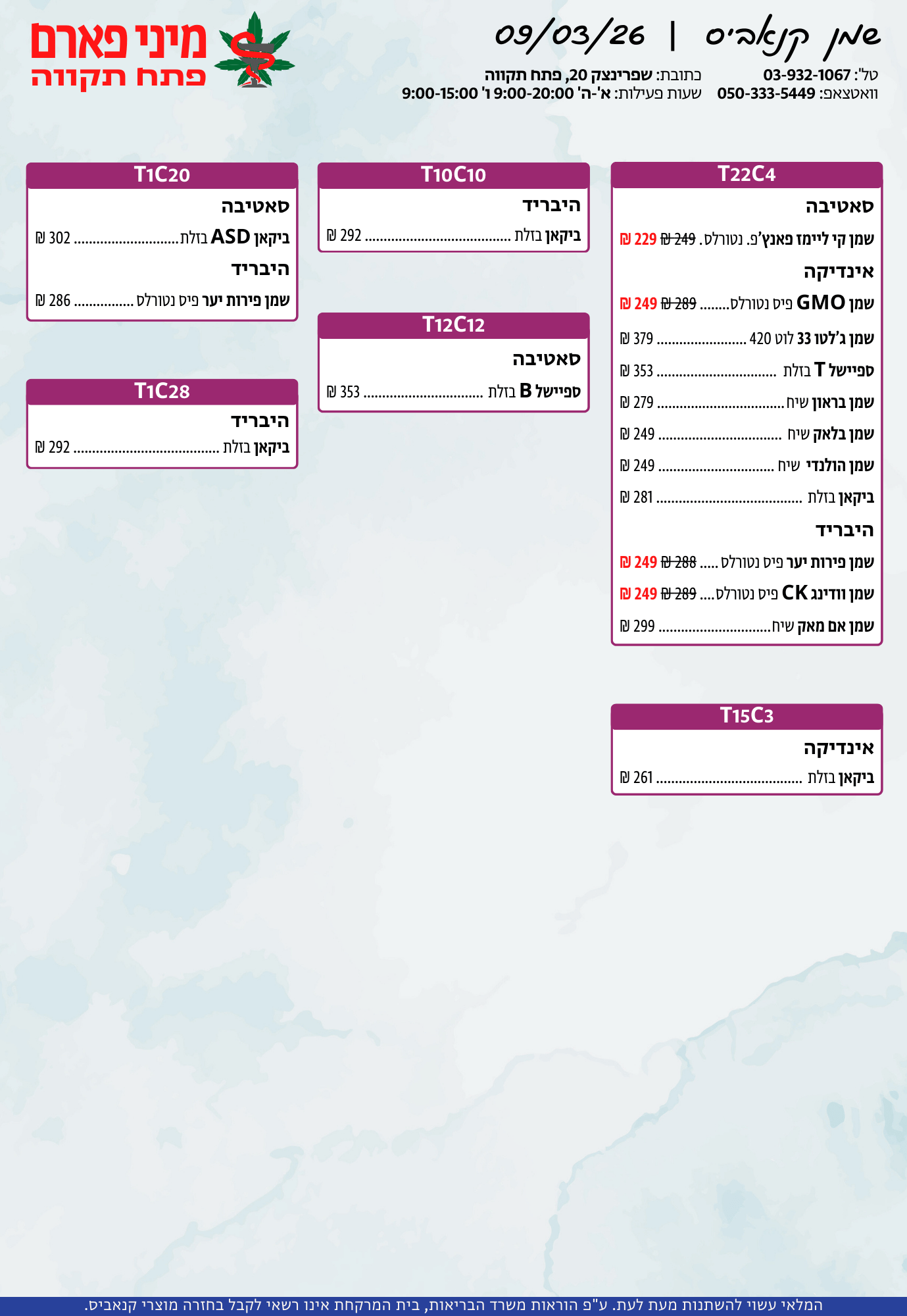 אתר זה מופעל על ידי בית מרקחת מיני פארם, רח' יוסף שפרינצק 20, פתח תקווה | רוקח אחראי: אימן נאסר – מ.ר: 5839