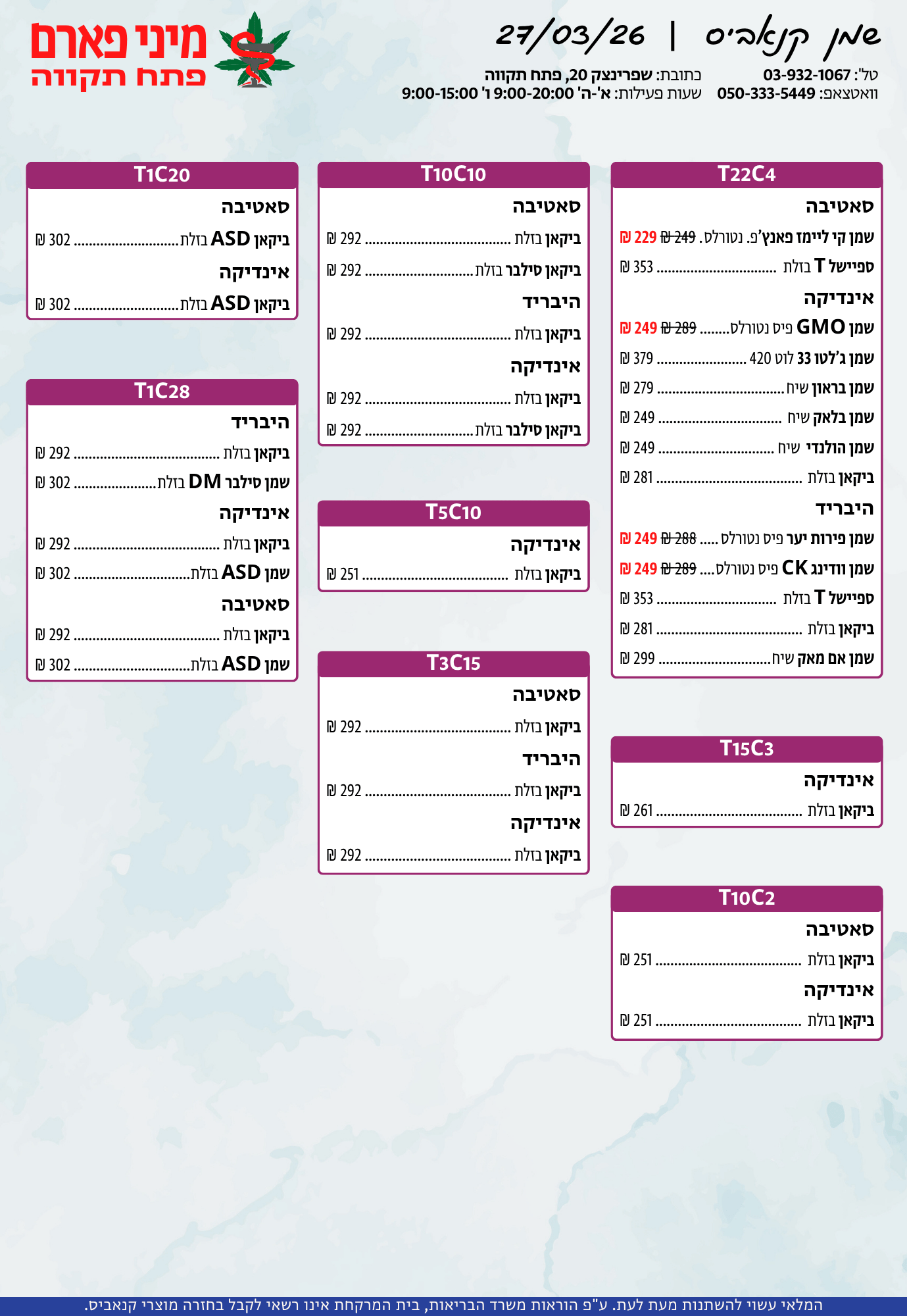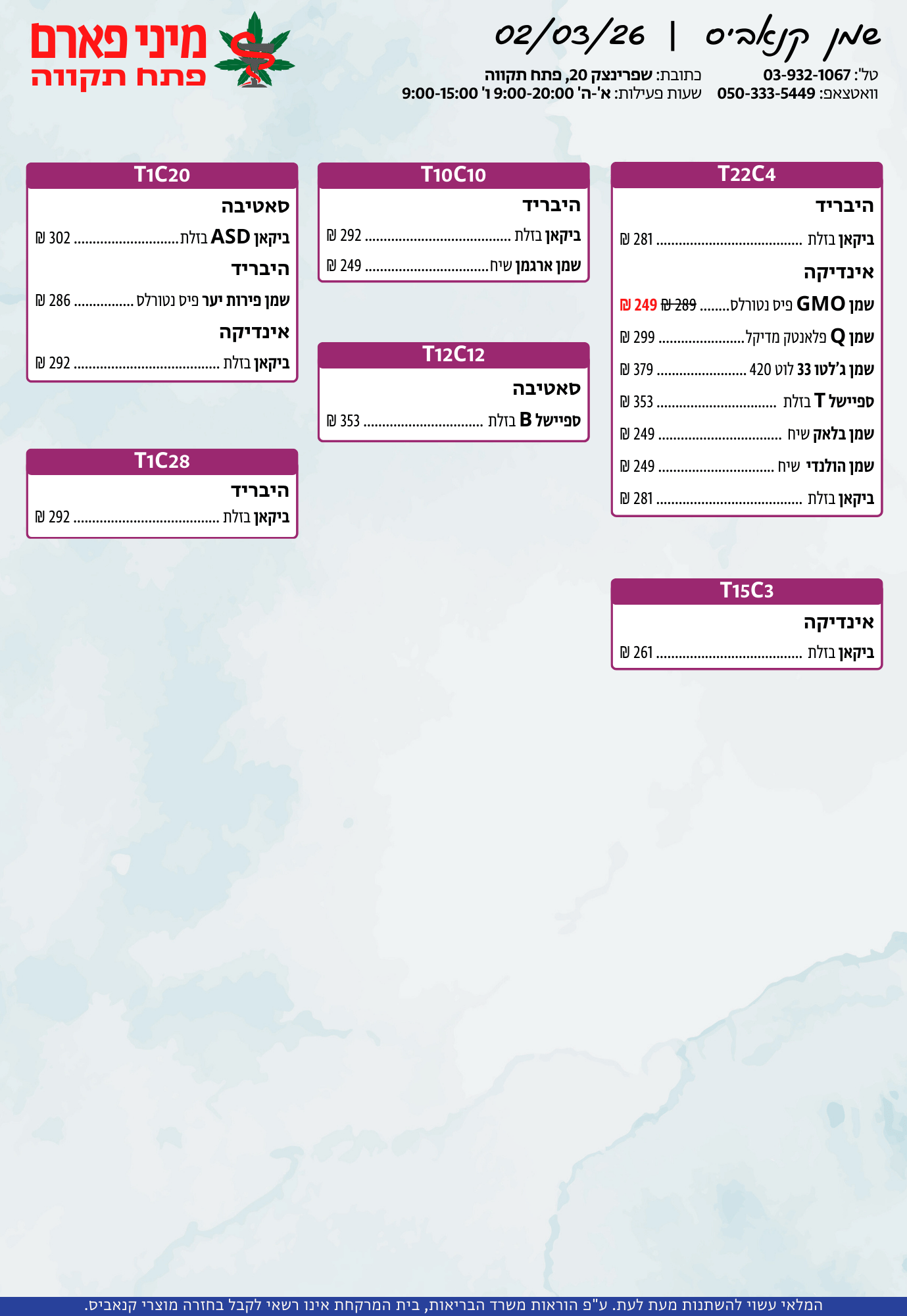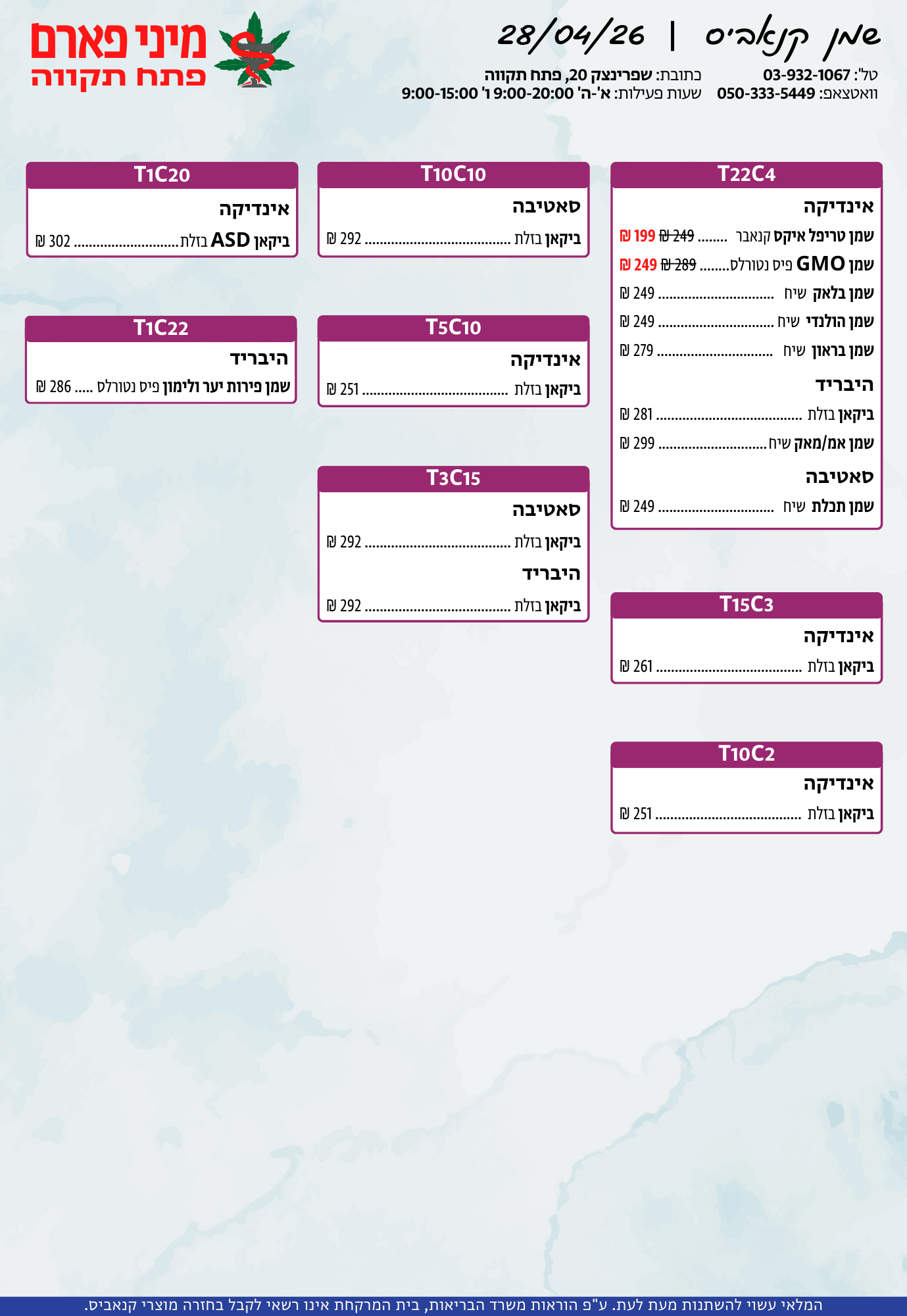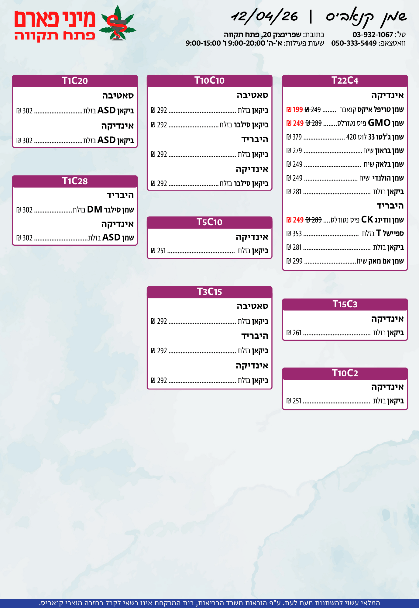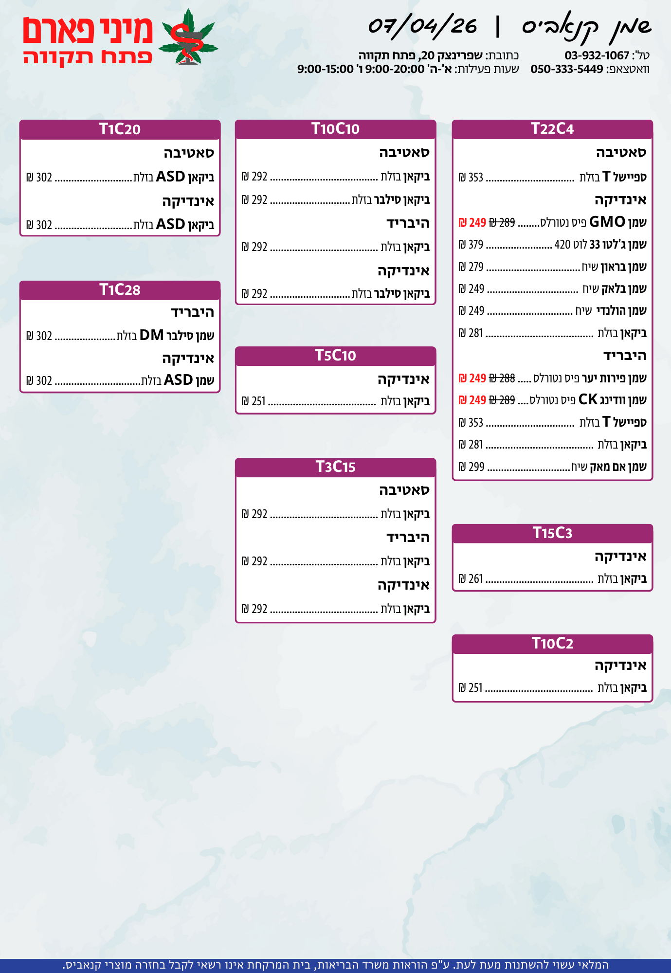 אתר זה מופעל על ידי בית מרקחת מיני פארם, רח' יוסף שפרינצק 20, פתח תקווה | רוקח אחראי: אימן נאסר – מ.ר: 5839