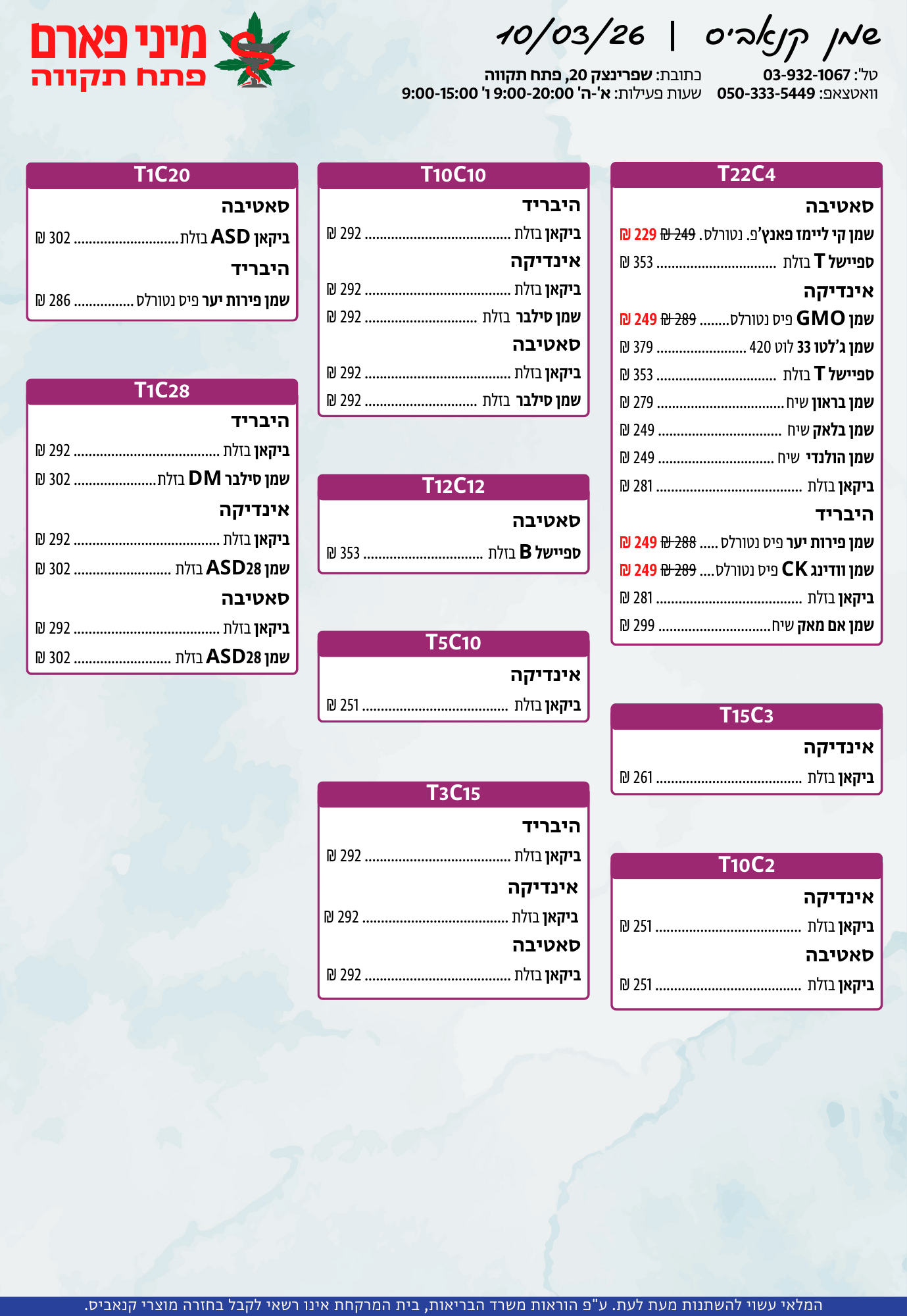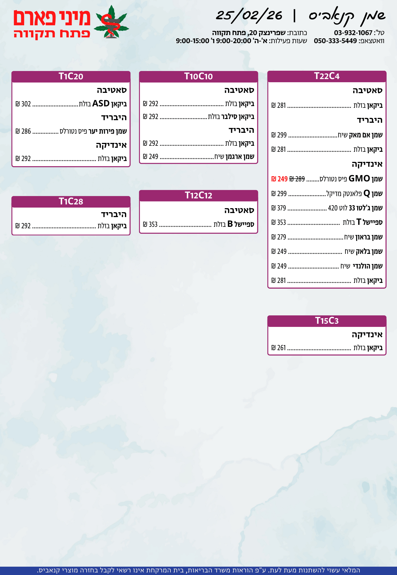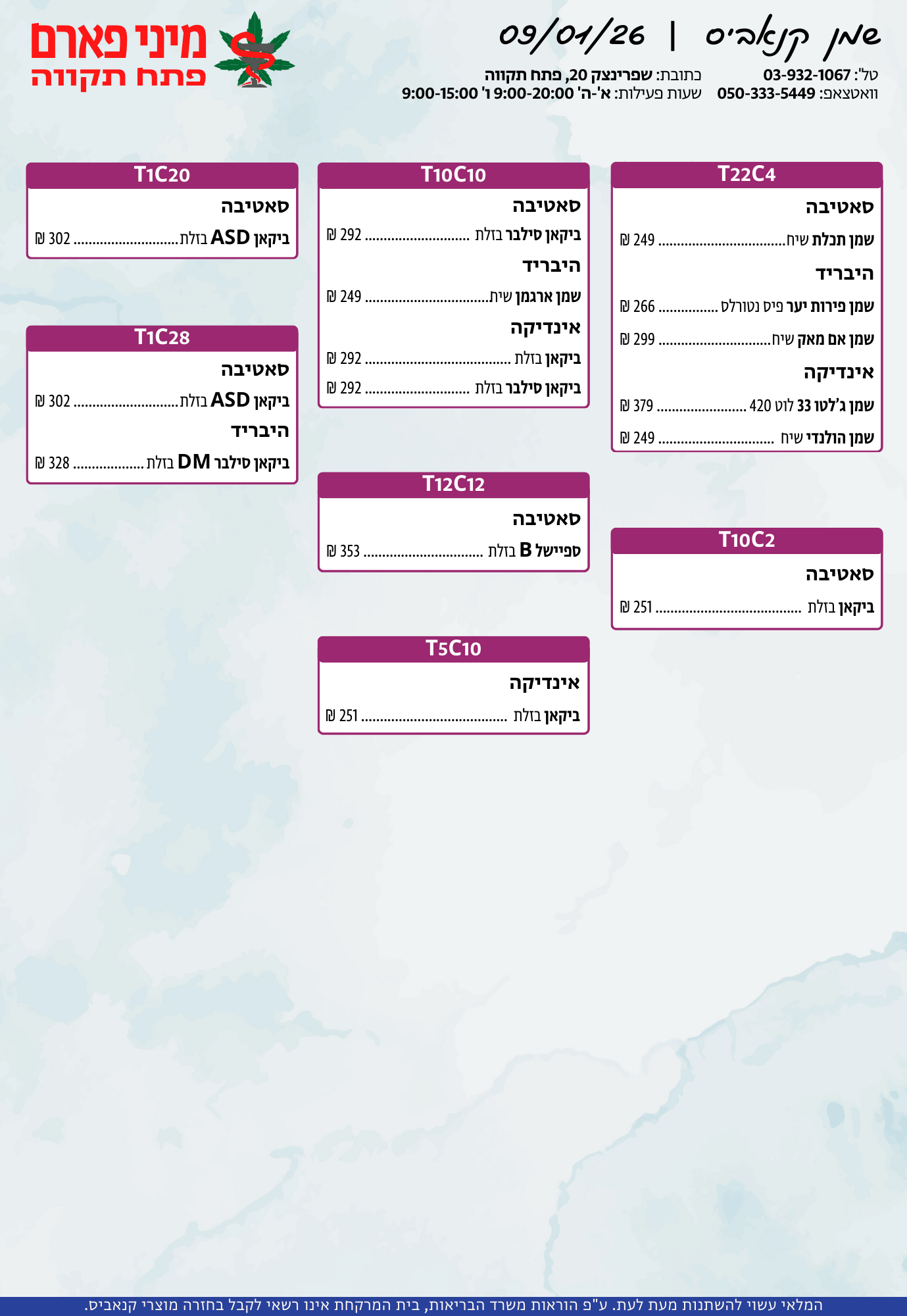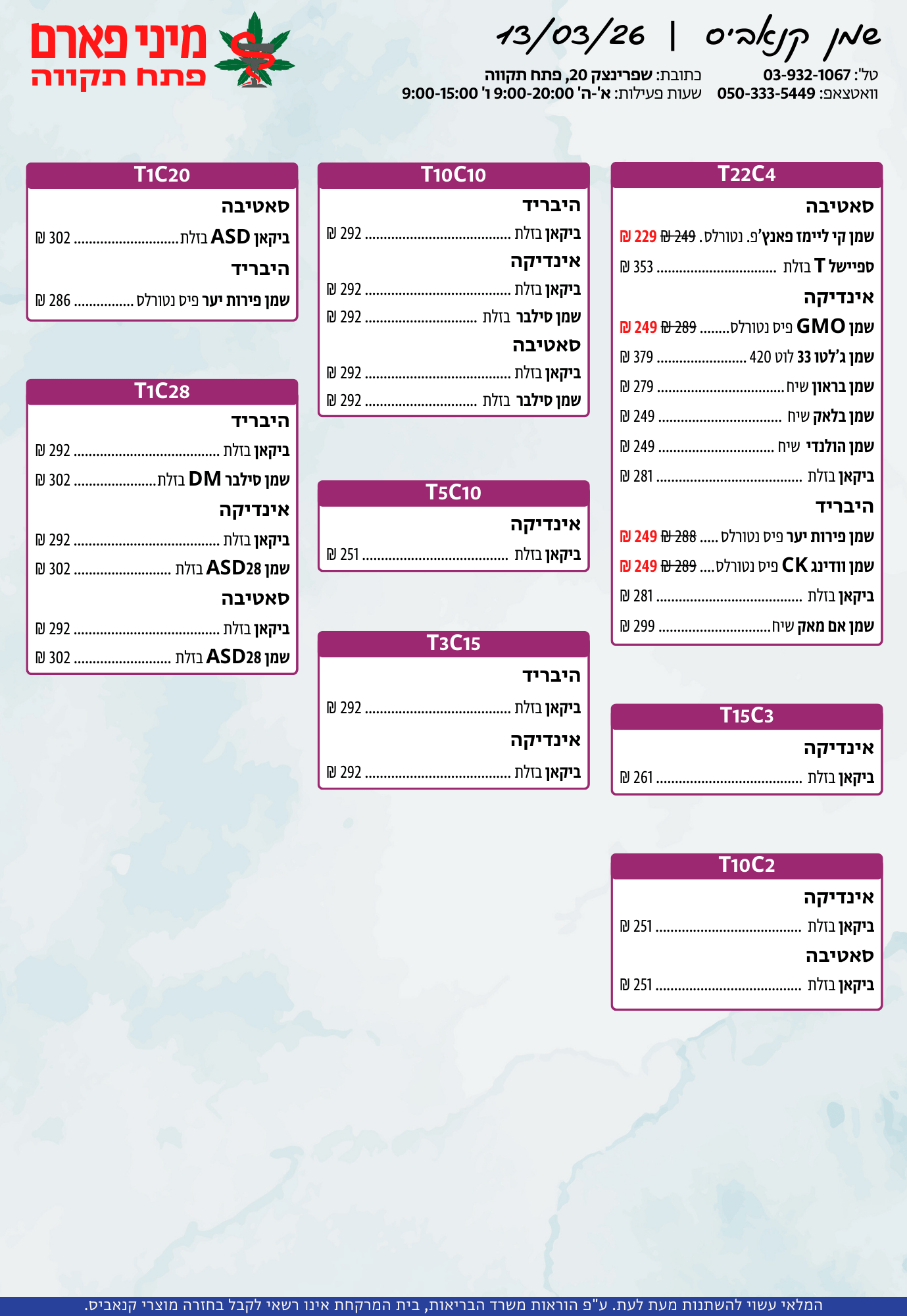 אתר זה מופעל על ידי בית מרקחת מיני פארם, רח' יוסף שפרינצק 20, פתח תקווה | רוקח אחראי: אימן נאסר – מ.ר: 5839