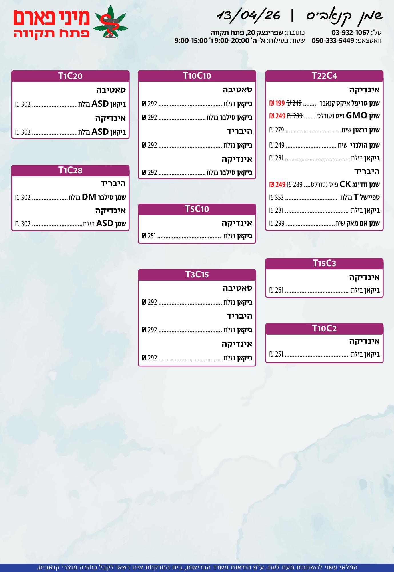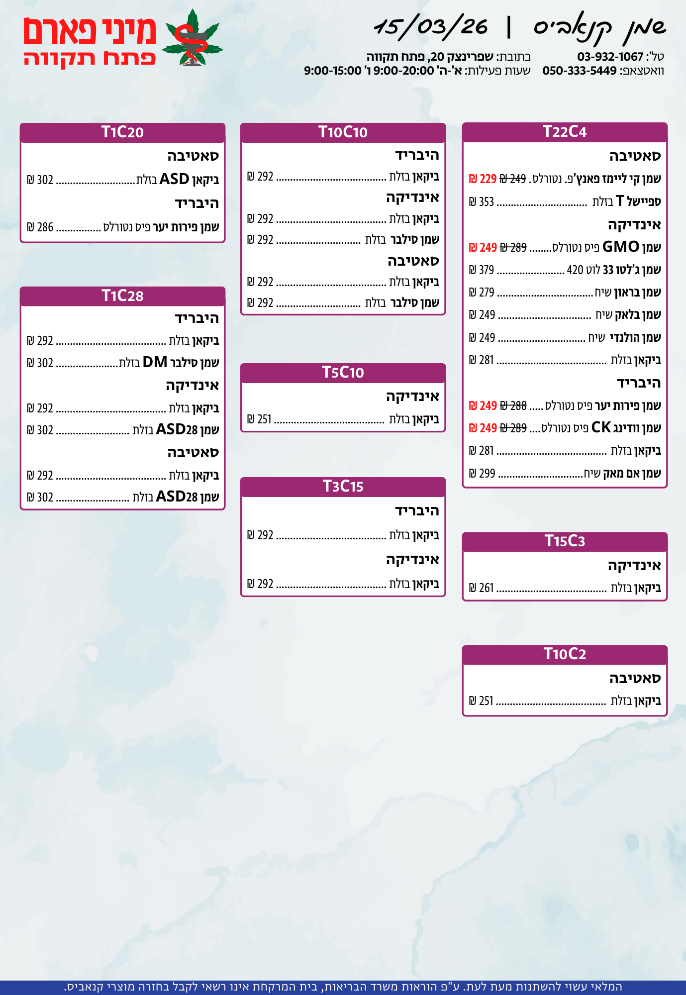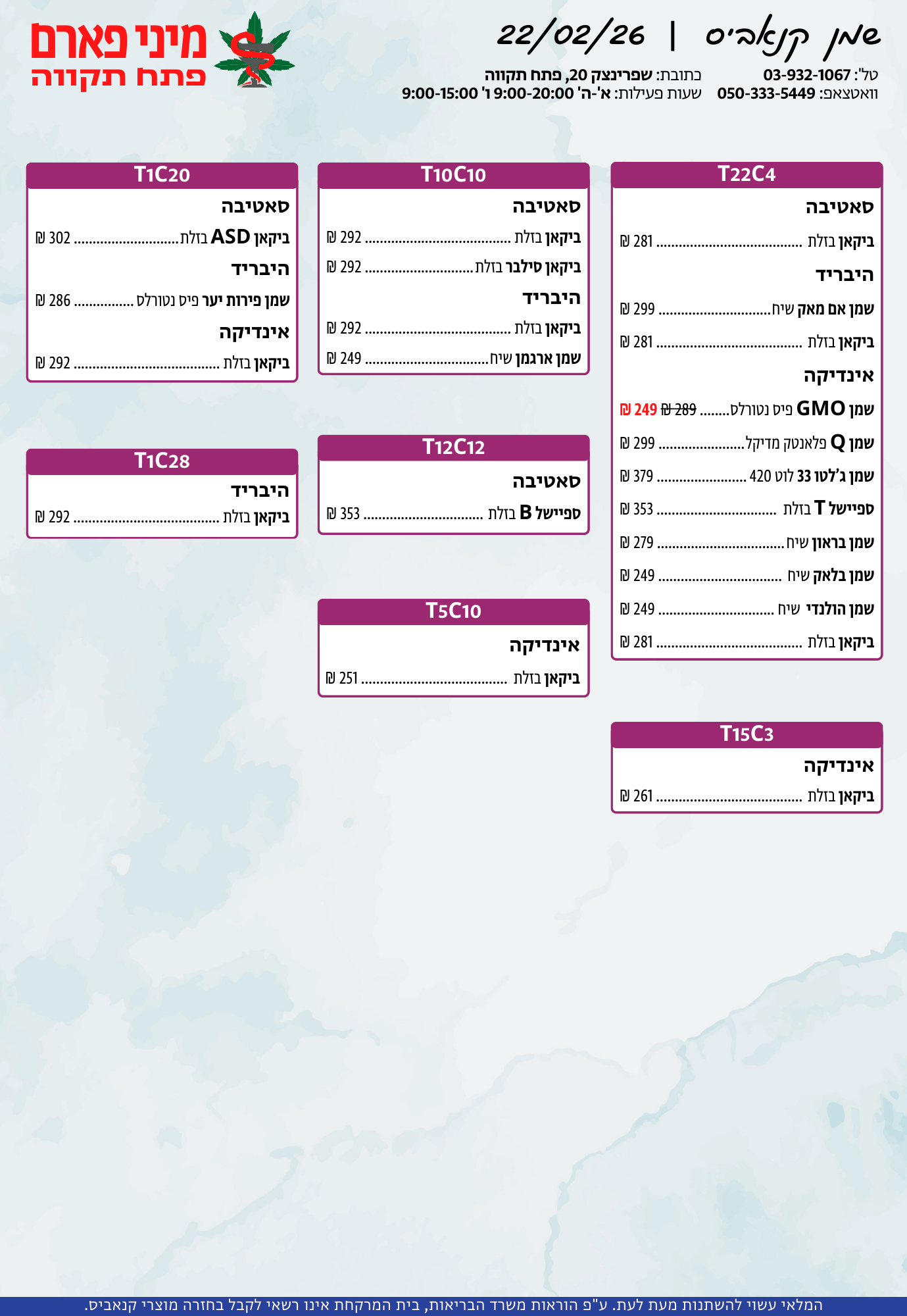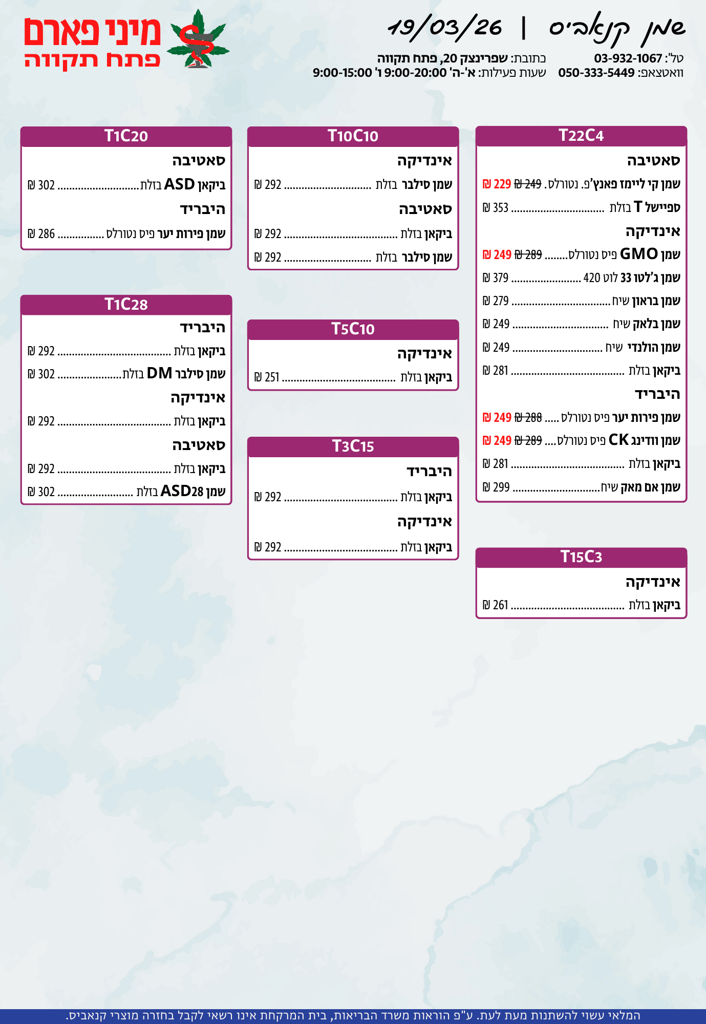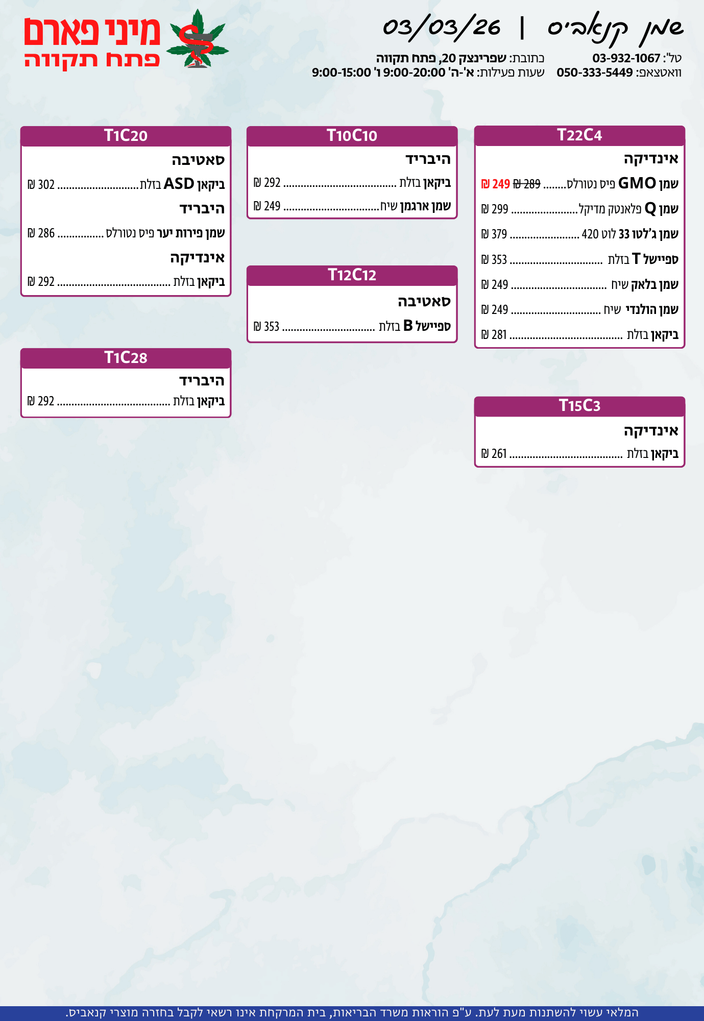 אתר זה מופעל על ידי בית מרקחת מיני פארם, רח' יוסף שפרינצק 20, פתח תקווה | רוקח אחראי: אימן נאסר – מ.ר: 5839
