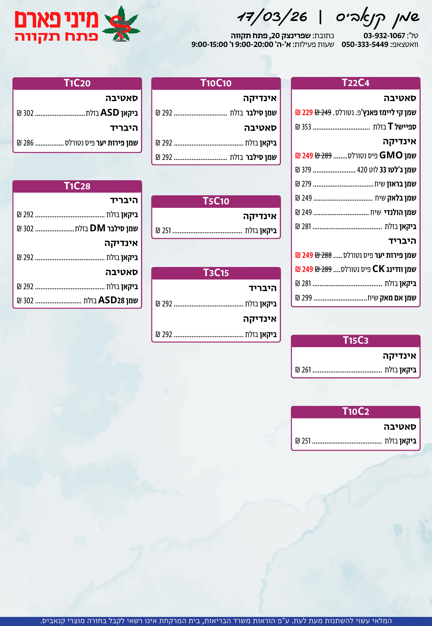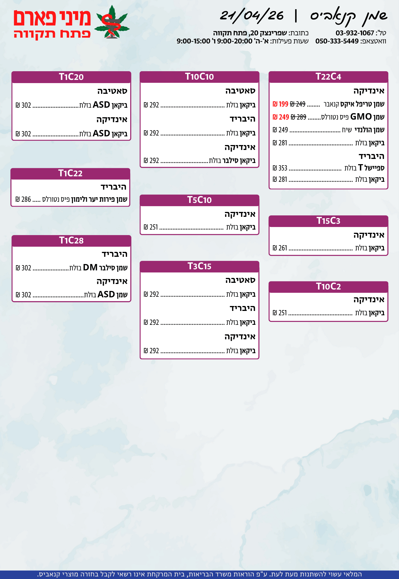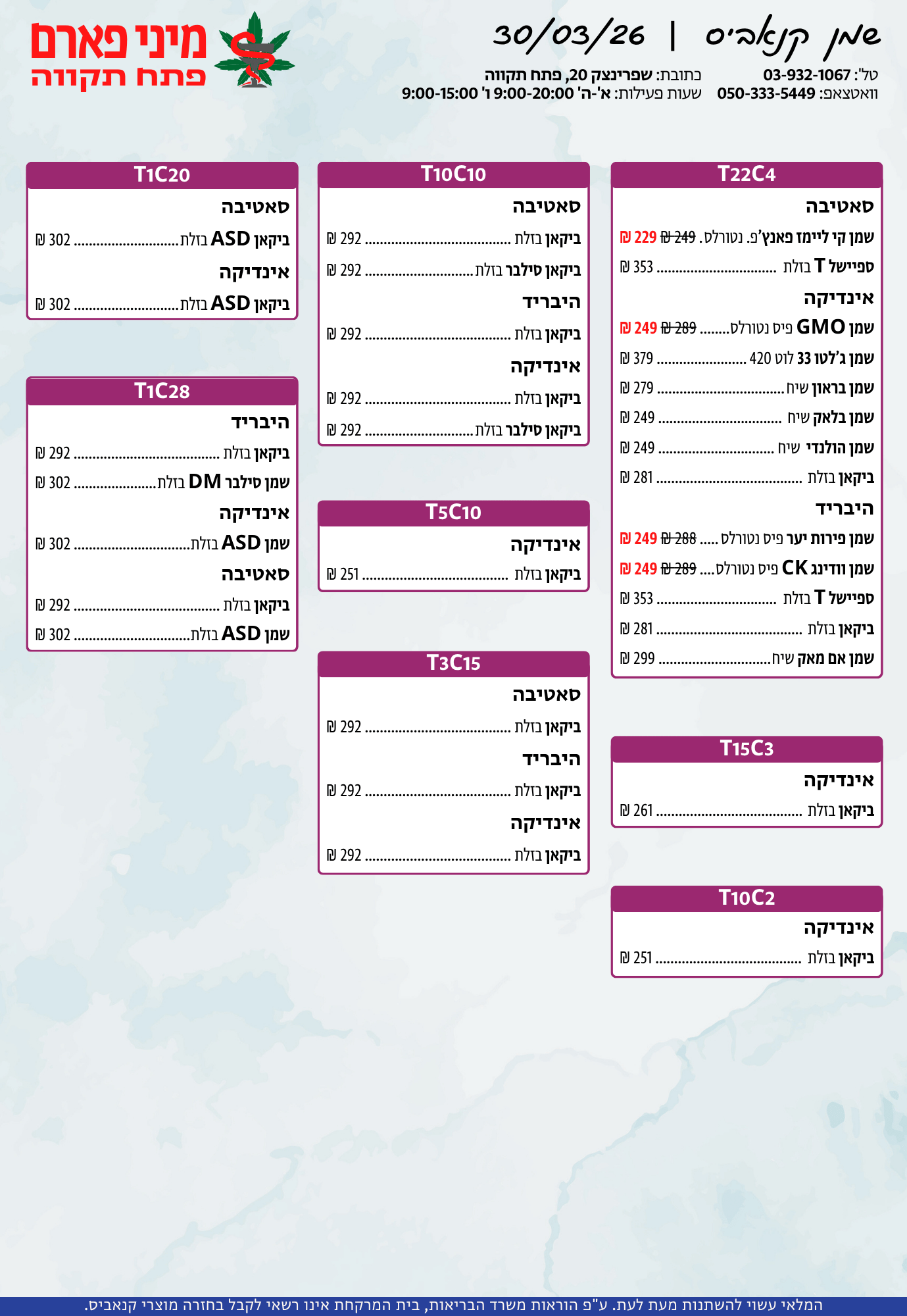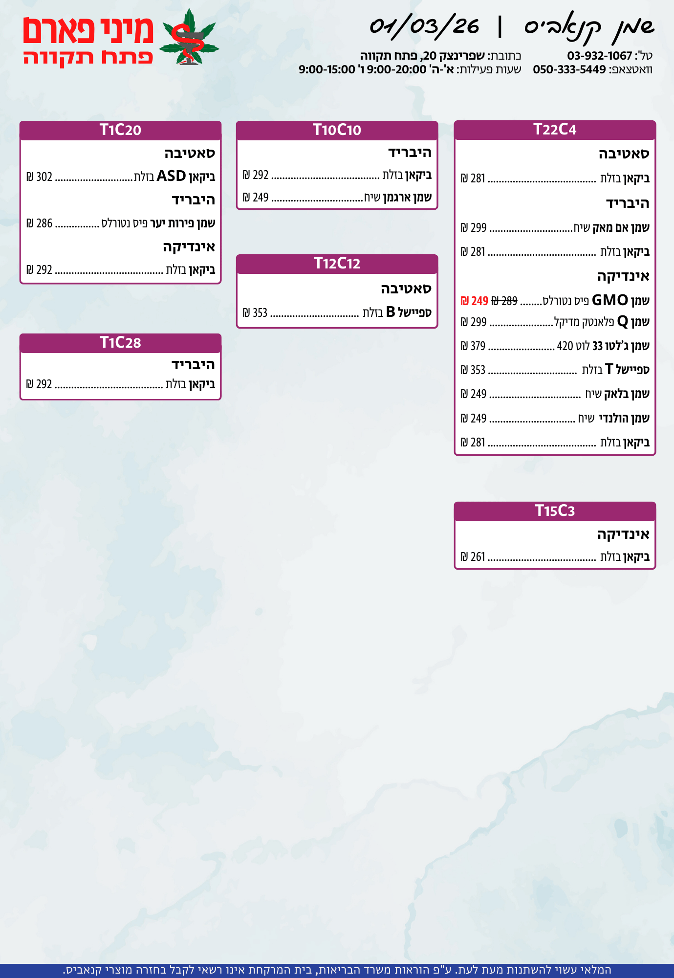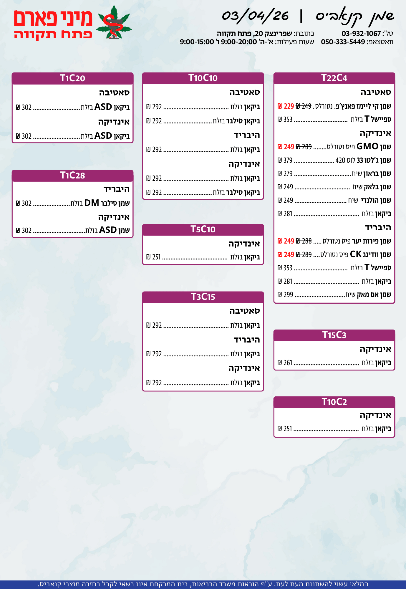 אתר זה מופעל על ידי בית מרקחת מיני פארם, רח' יוסף שפרינצק 20, פתח תקווה | רוקח אחראי: אימן נאסר – מ.ר: 5839