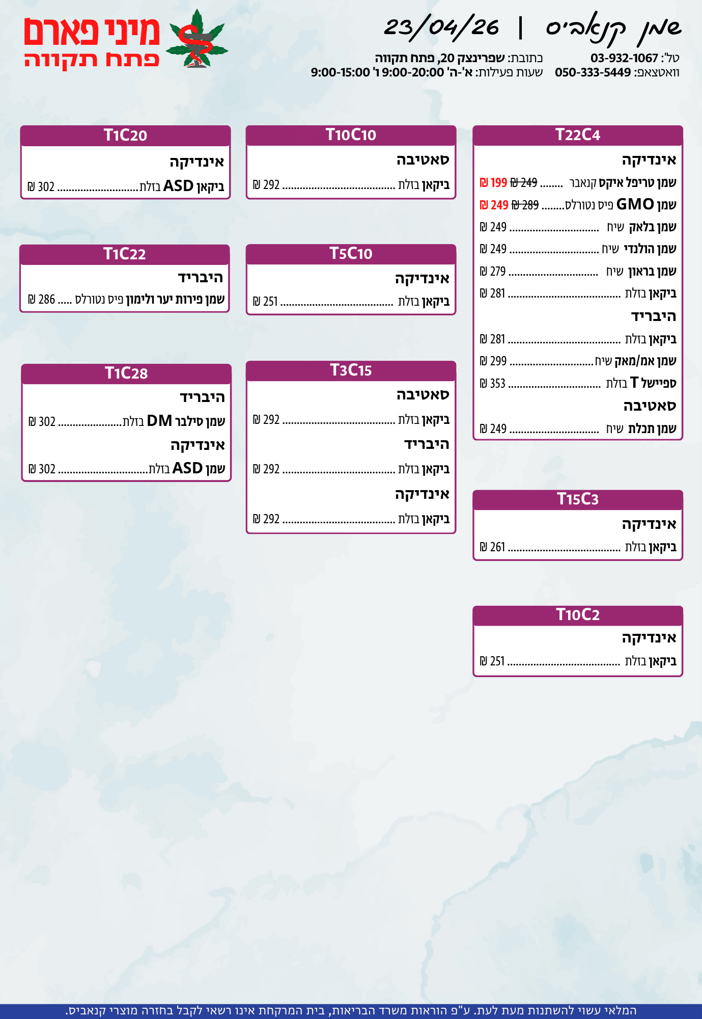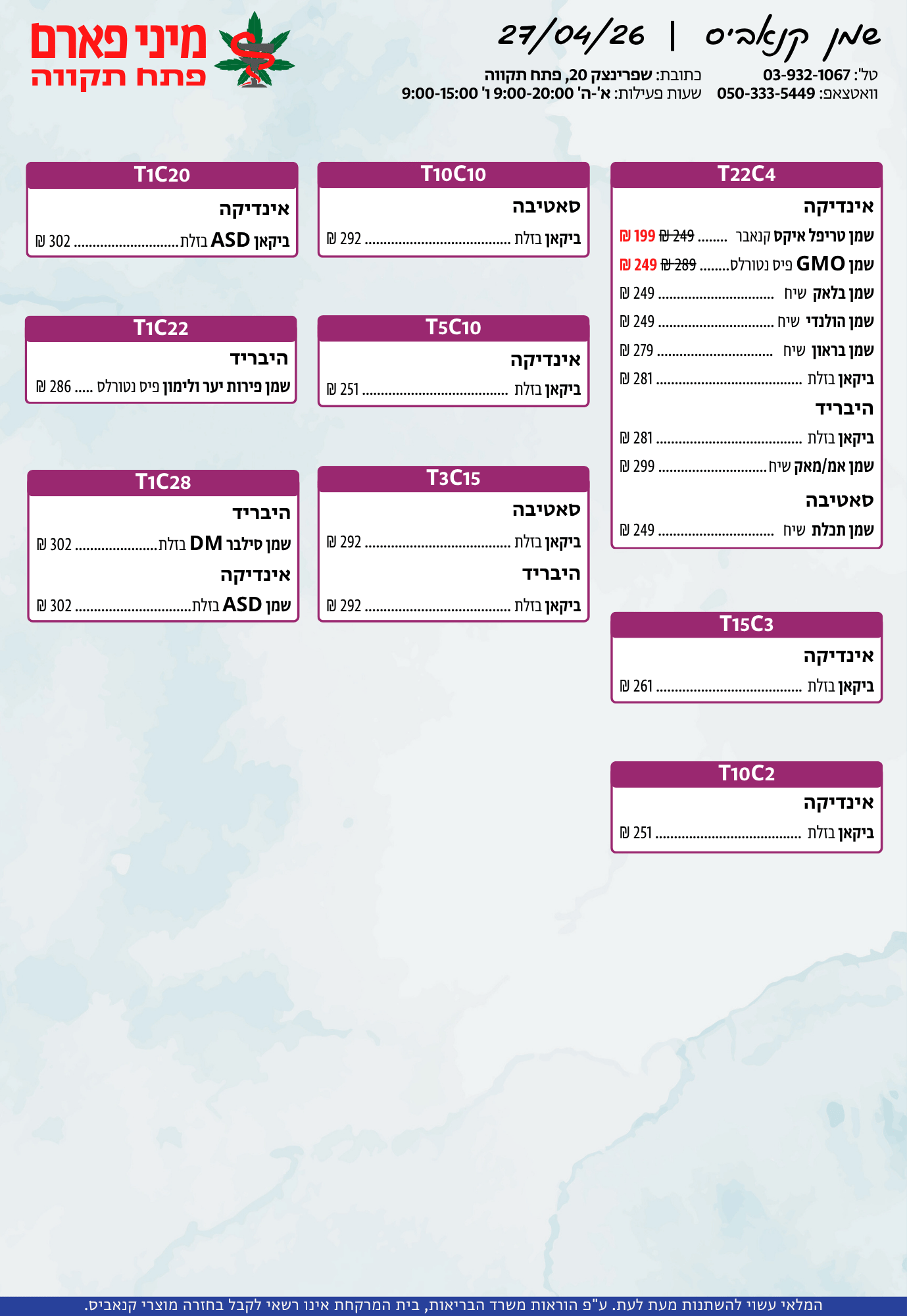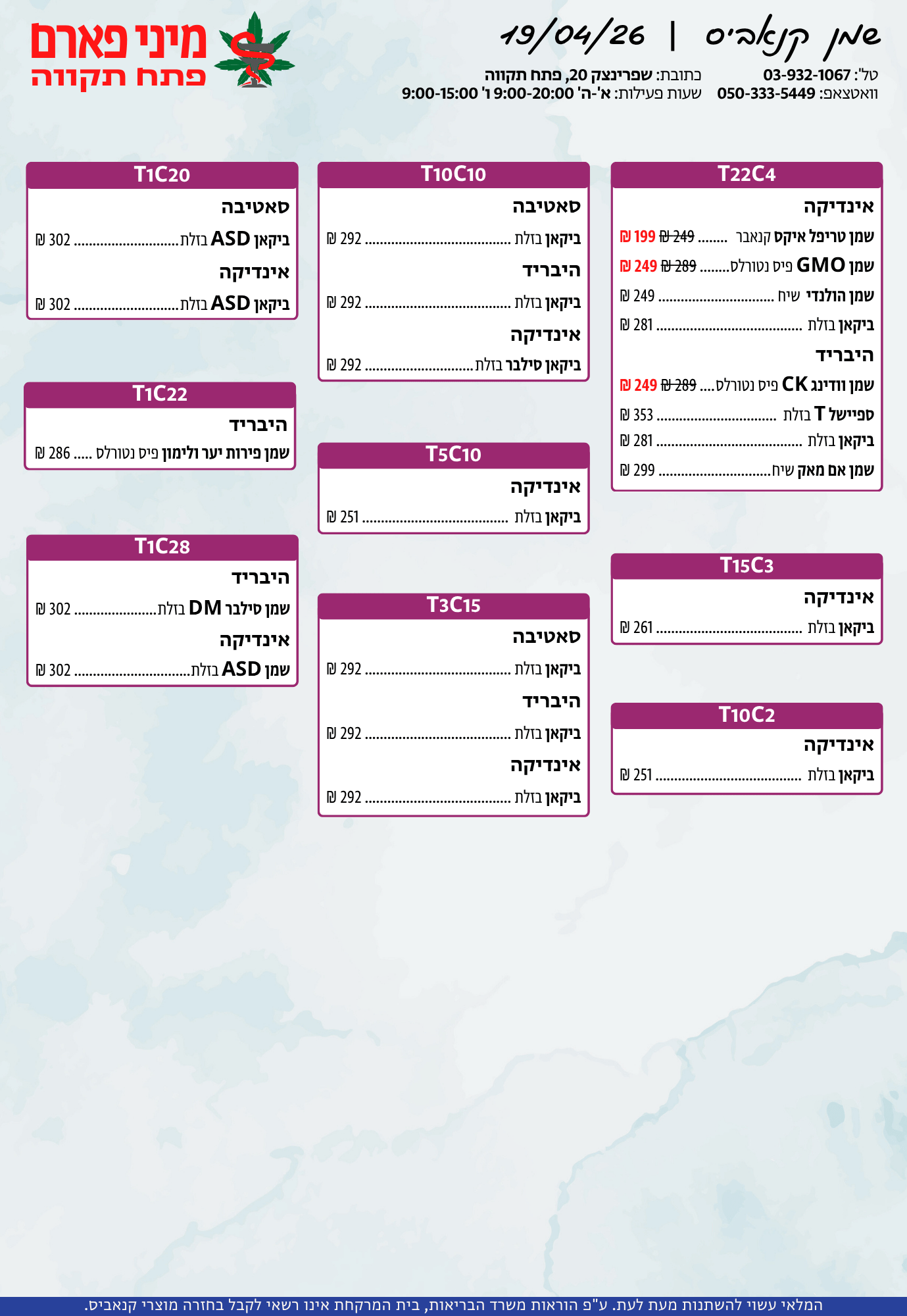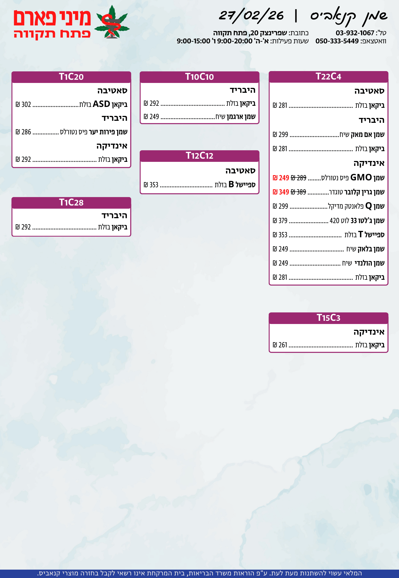 אתר זה מופעל על ידי בית מרקחת מיני פארם, רח' יוסף שפרינצק 20, פתח תקווה | רוקח אחראי: אימן נאסר – מ.ר: 5839