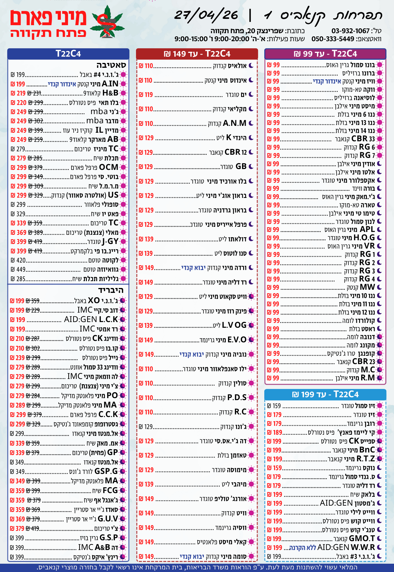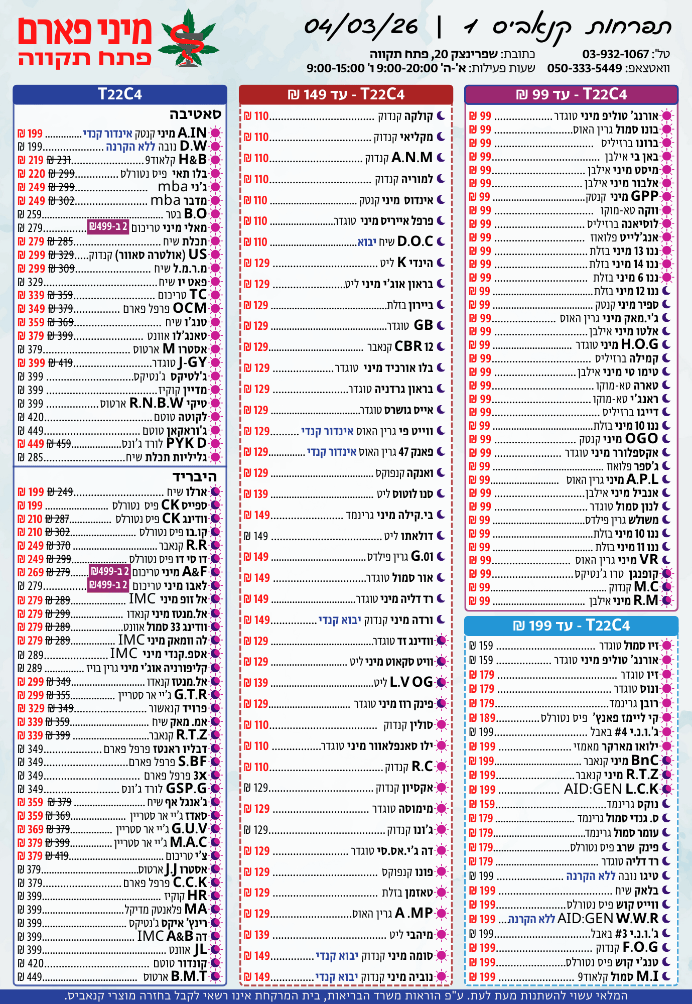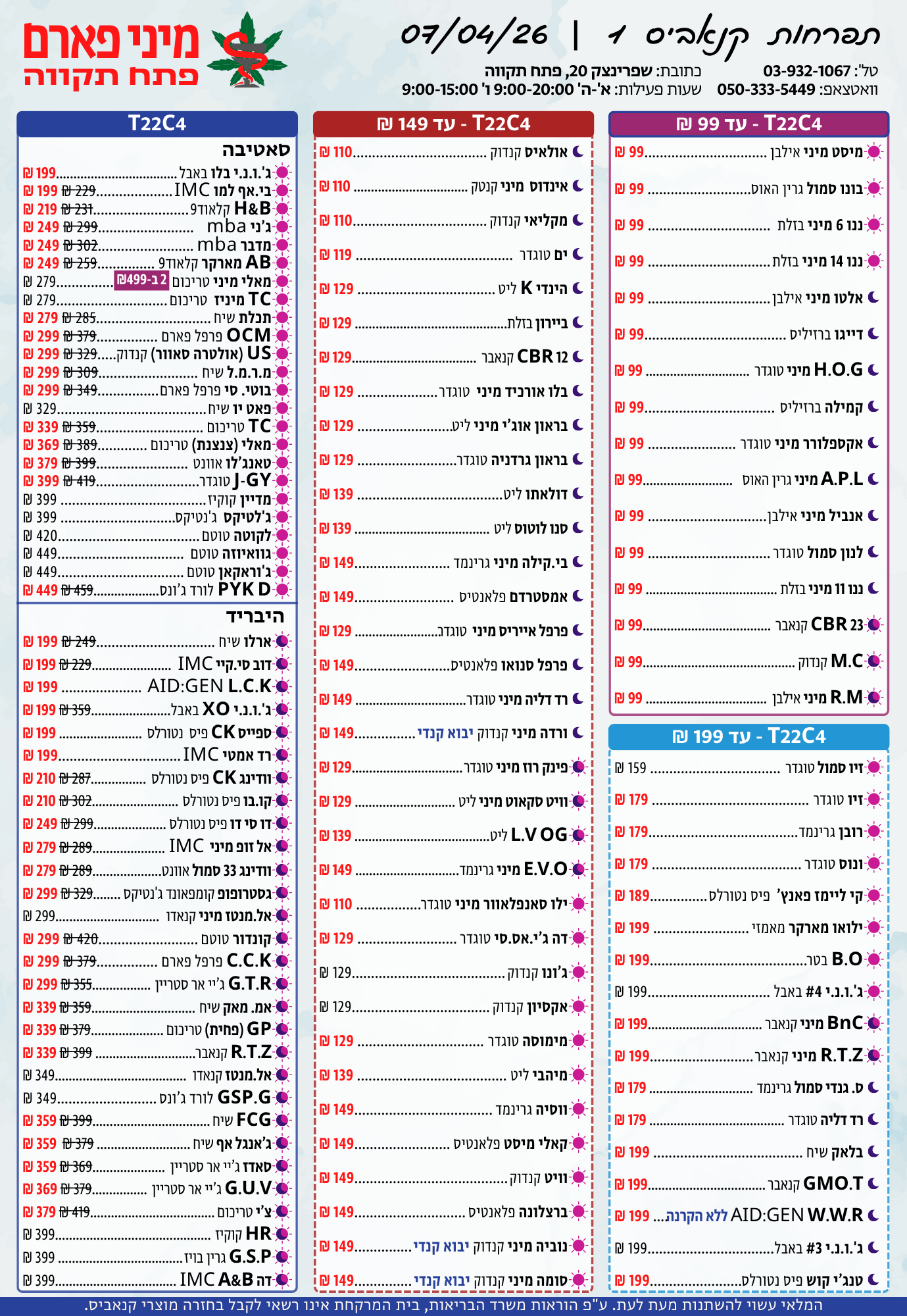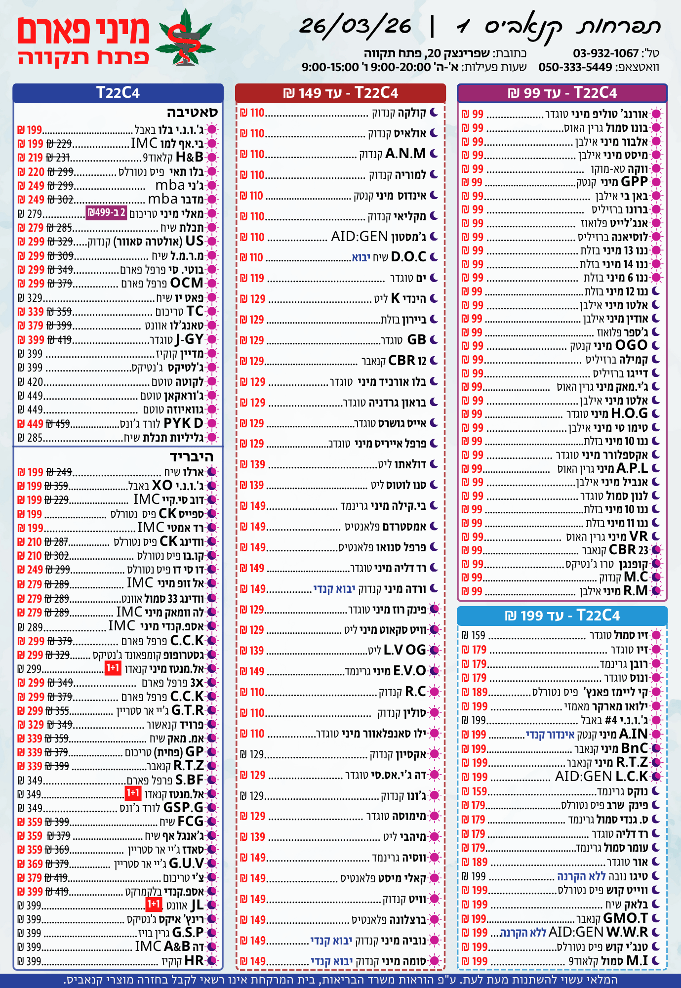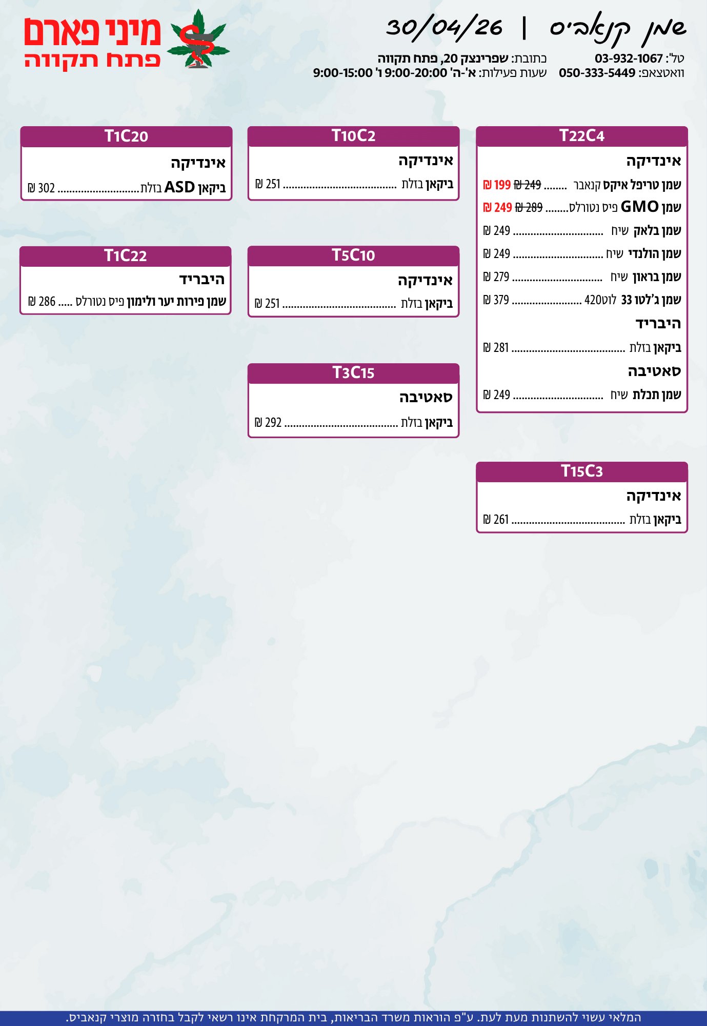 אתר זה מופעל על ידי בית מרקחת מיני פארם, רח' יוסף שפרינצק 20, פתח תקווה | רוקח אחראי: אימן נאסר – מ.ר: 5839